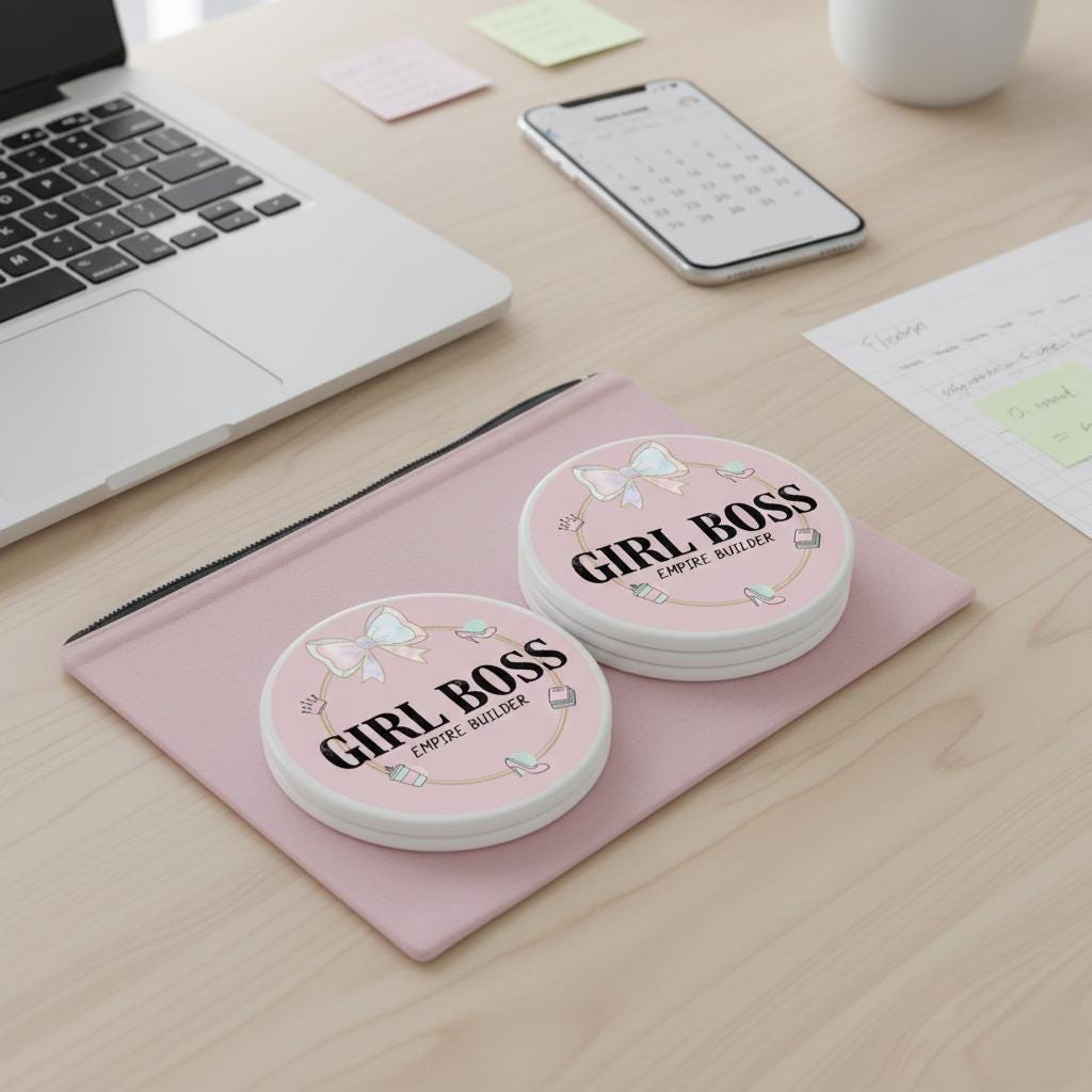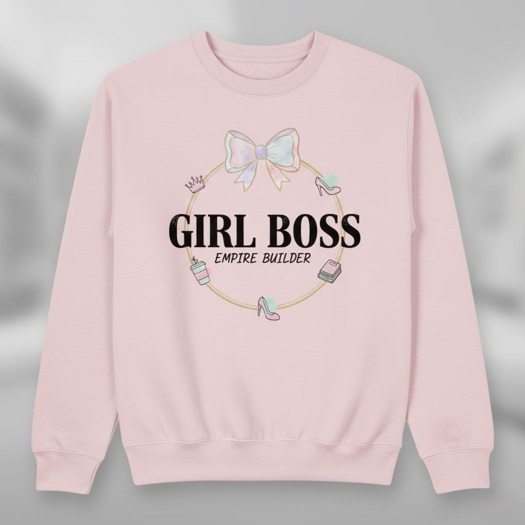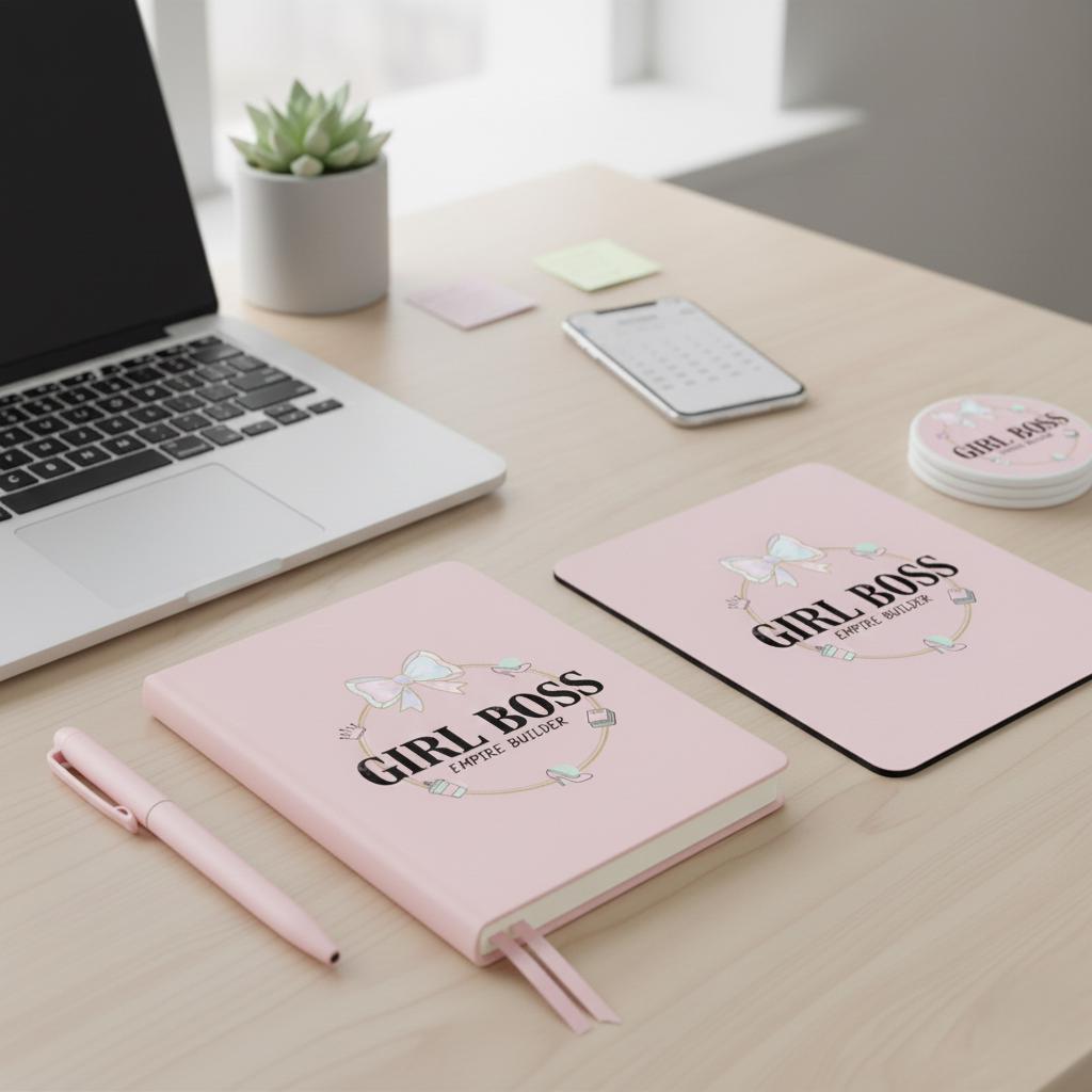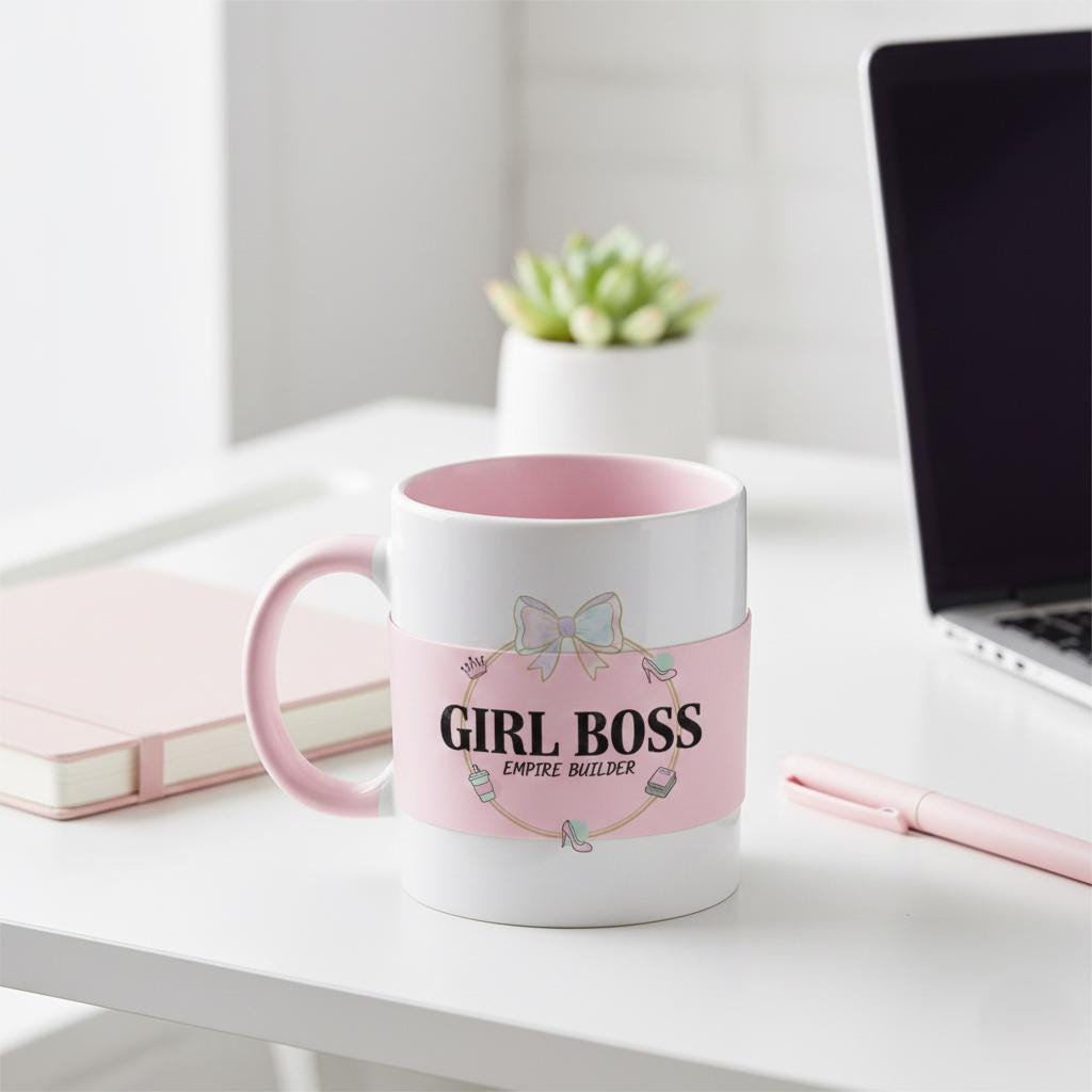 This "Girl Boss / Empire Builder" branding logo is specifically crafted for the modern entrepreneur who balances professional ambition with a chic, feminine aesthetic. What makes this design stand out is its clever curation of "lifestyle productivity" icons—including high heels, a coffee cup, books, and a crown—artfully arranged around a delicate golden frame and a soft watercolor bow. It perfectly captures the spirit of a woman building her empire, offering a professional yet stylish identity that works beautifully for planners, coaches, fashion influencers, or boutique owners looking to inspire confidence and luxury.