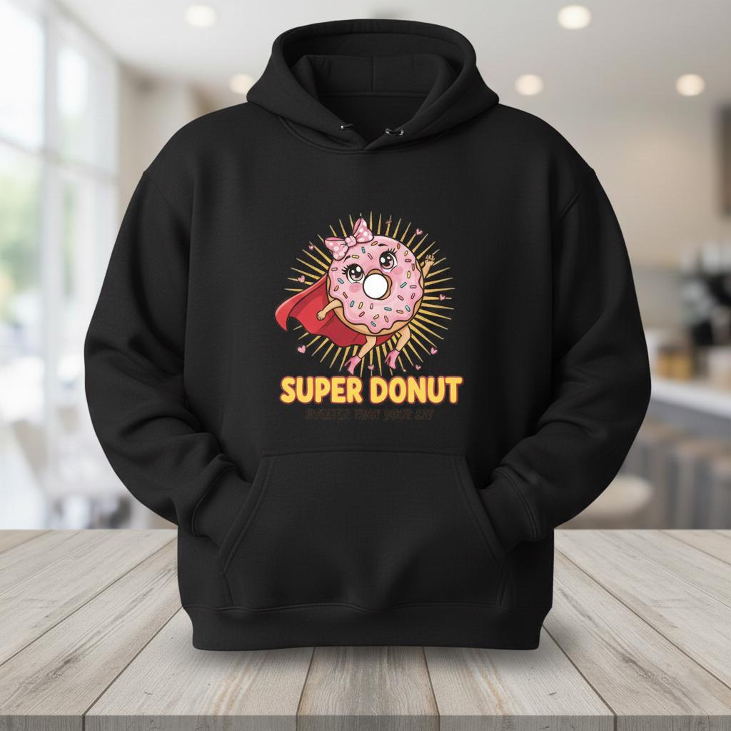 This "Super Donut" illustration is a delightful mix of vibrant pop art and cheeky humor, guaranteed to bring a smile to anyone's face. What makes this piece truly special is its playful personality; featuring a pink-frosted donut hero complete with a cape, high heels, and the sassy slogan "Sweeter Than Your Ex." The combination of bold comic-style line work, glowing sunburst background, and adorable heart details creates a high-energy aesthetic that is perfect for brightening up a kitchen, a dorm room, or gifting to a friend who appreciates a good laugh and a sweet treat. It’s not just an art print; it’s a fun, empowering statement of sweetness and strength.