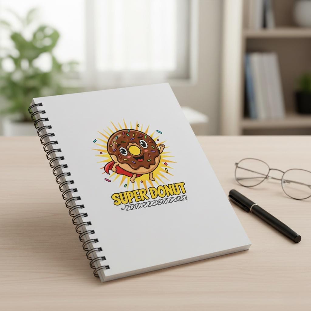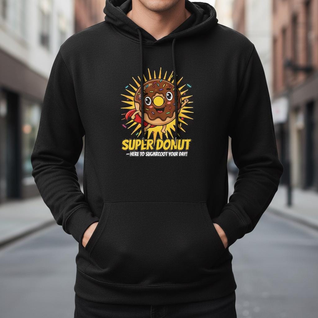 This vibrant "Super Donut" illustration is designed to bring an instant burst of positivity and sweetness to your daily life. What makes this piece truly special is its heartwarming message, "Here to sugarcoat your day," featuring a joyful chocolate-frosted hero soaring with a red cape and a triumphant fist. The energetic sunburst background and colorful sprinkles create a high-spirited aesthetic that is perfect for brightening up a home office, kitchen, or child's bedroom. It’s a wonderful daily reminder to stay optimistic, making it a thoughtful gift for anyone who needs a little "sugar-coated" encouragement and a lot of smiles.