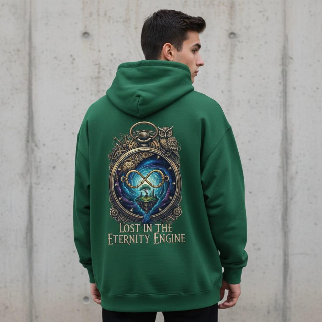 This design is a masterpiece of Steampunk artistry, blending mechanical precision with the mysteries of the universe. Featuring a majestic wisdom owl perched atop a complex 'Eternity Engine,' it showcases a surreal landscape trapped within an infinity loop. It’s an ideal choice for fans of clockwork aesthetics, cosmic philosophy, and intricate fantasy art, offering a unique visual journey into the heart of timelessness