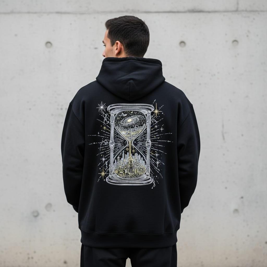 This breathtaking mystical hourglass illustration masterfully captures the essence of time and the universe, featuring a swirling galaxy in the upper bulb that flows into an intricate golden cityscape below. What makes this piece unique is its detailed Dark Academia aesthetic, blending celestial constellations and shimmering stardust with a classic, scholarly frame that symbolizes the infinite nature of creation. Perfectly suited for visionary branding, philosophical junk journals, or sophisticated wall art, this high-quality graphic brings a profound sense of cosmic wonder and timeless elegance to your creative projects, making it a true centerpiece for any digital collection.