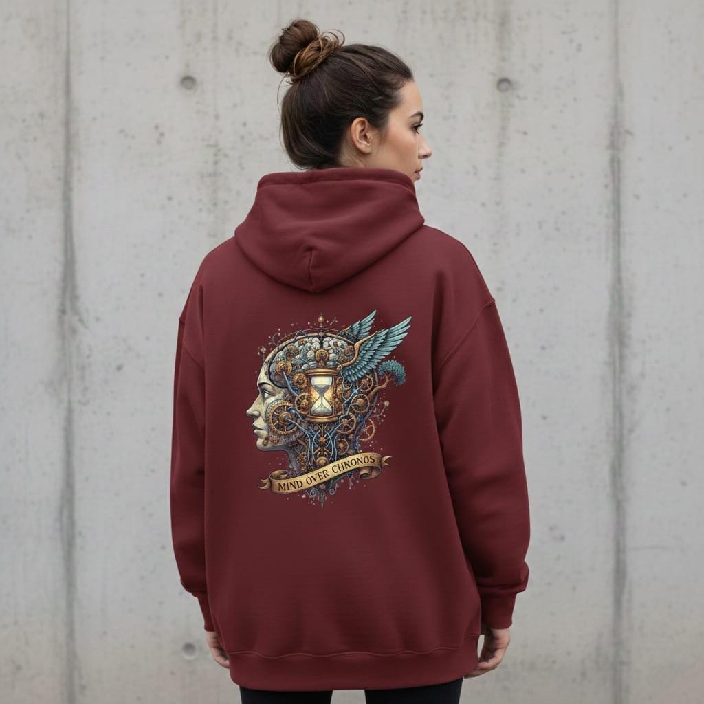 Elevate your style with a design that explores the intricate connection between human consciousness and time. Featuring a beautifully detailed steampunk brain integrated with a golden hourglass and celestial wings, this 'Mind Over Chronos' piece symbolizes the power of the intellect over the passage of time. It’s a profound statement for philosophy lovers, science enthusiasts, and anyone captivated by the fusion of mechanical art and anatomy