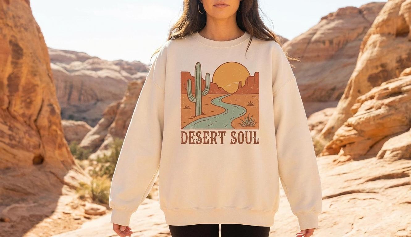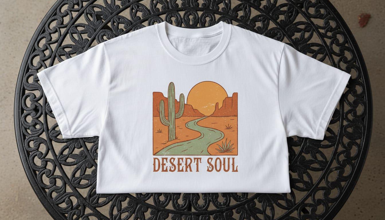 Connect with the serene beauty of the wilderness through our 'Desert Soul' graphic tee. This design features a nostalgic vintage-style canyon landscape, capturing a winding road leading toward a warm, golden sunset. With its minimalist boho aesthetic and earthy southwestern tones, it perfectly embodies the freedom of the open road. Ideal for travelers, nature lovers, and fans of 70s retro outdoor fashion, this piece adds a touch of soul to any adventure