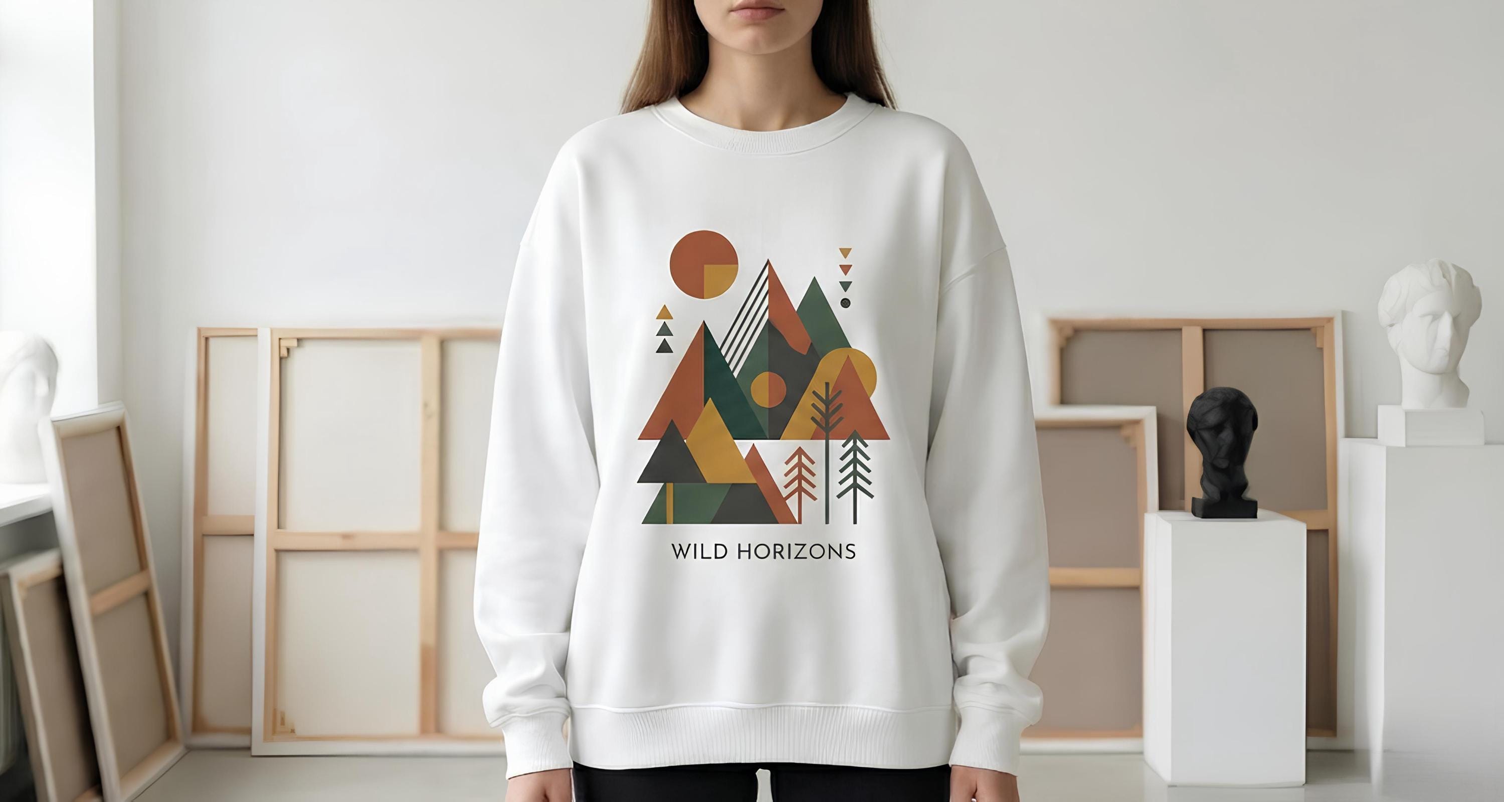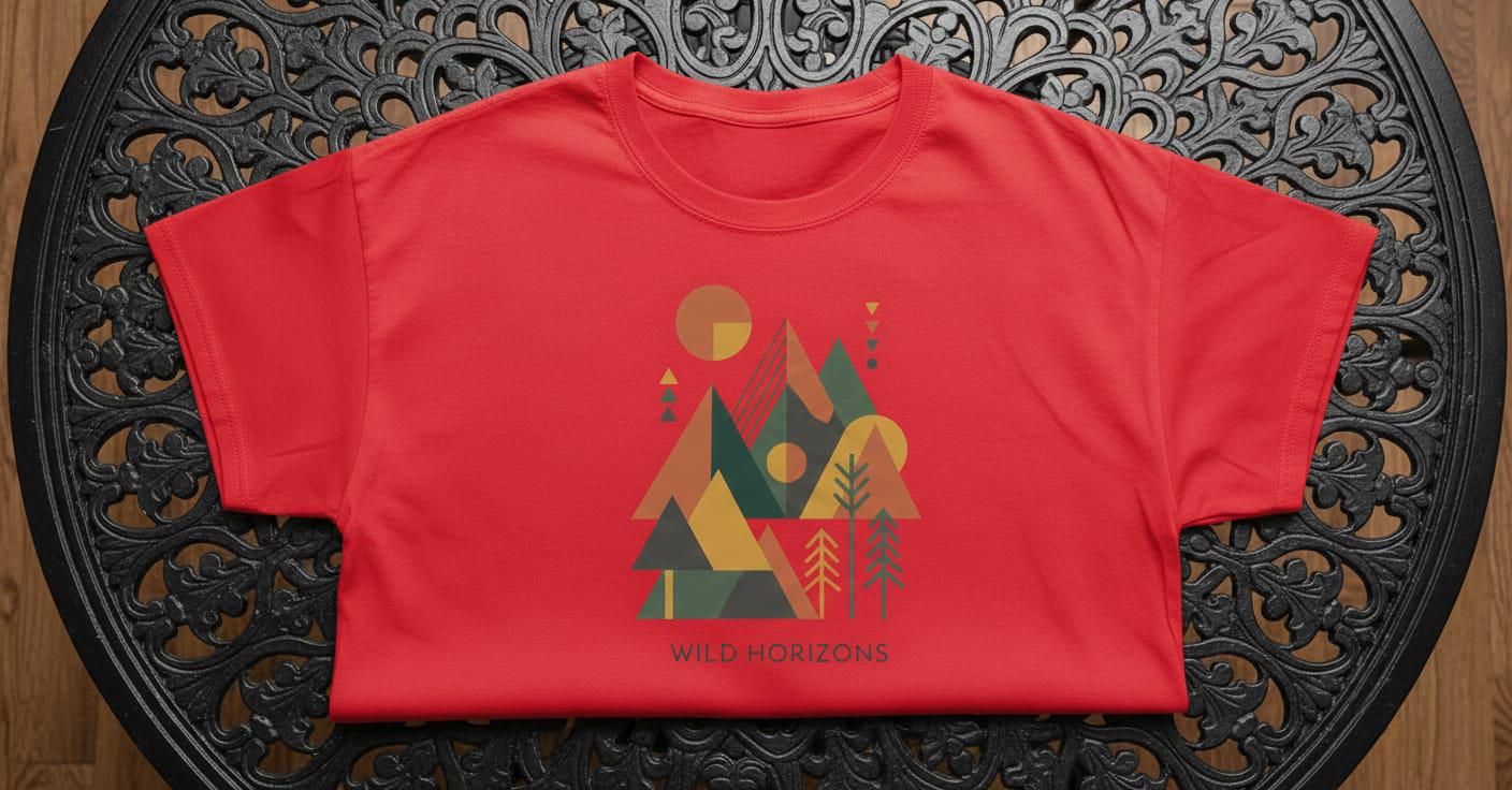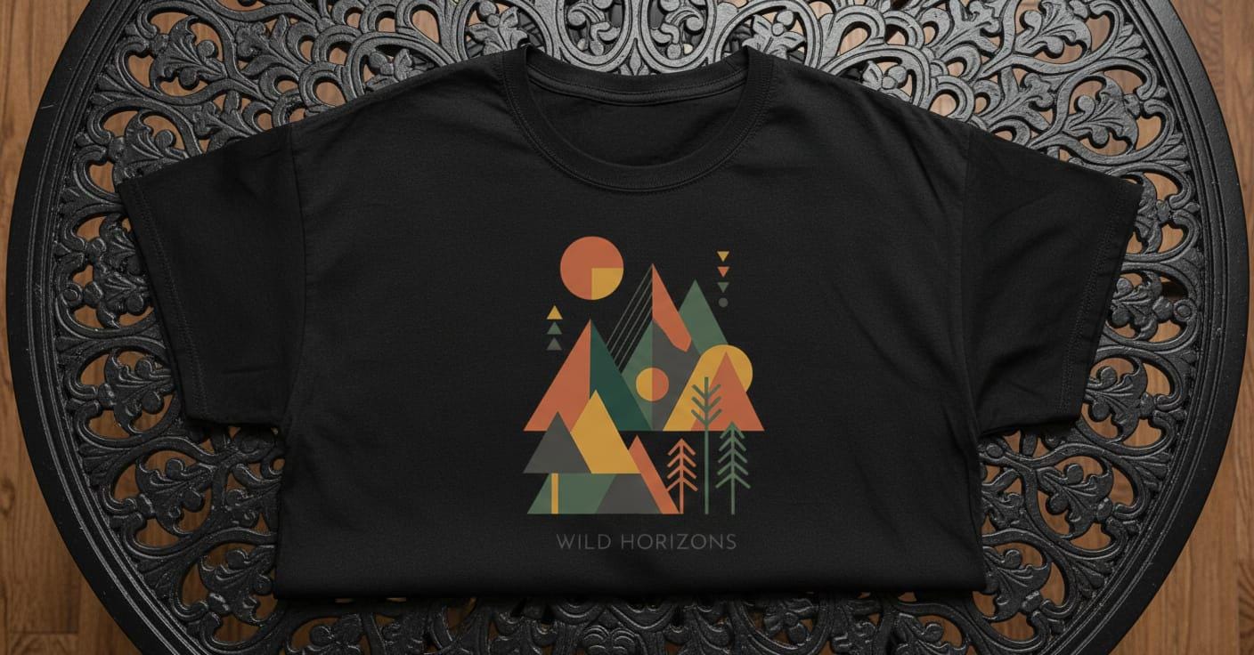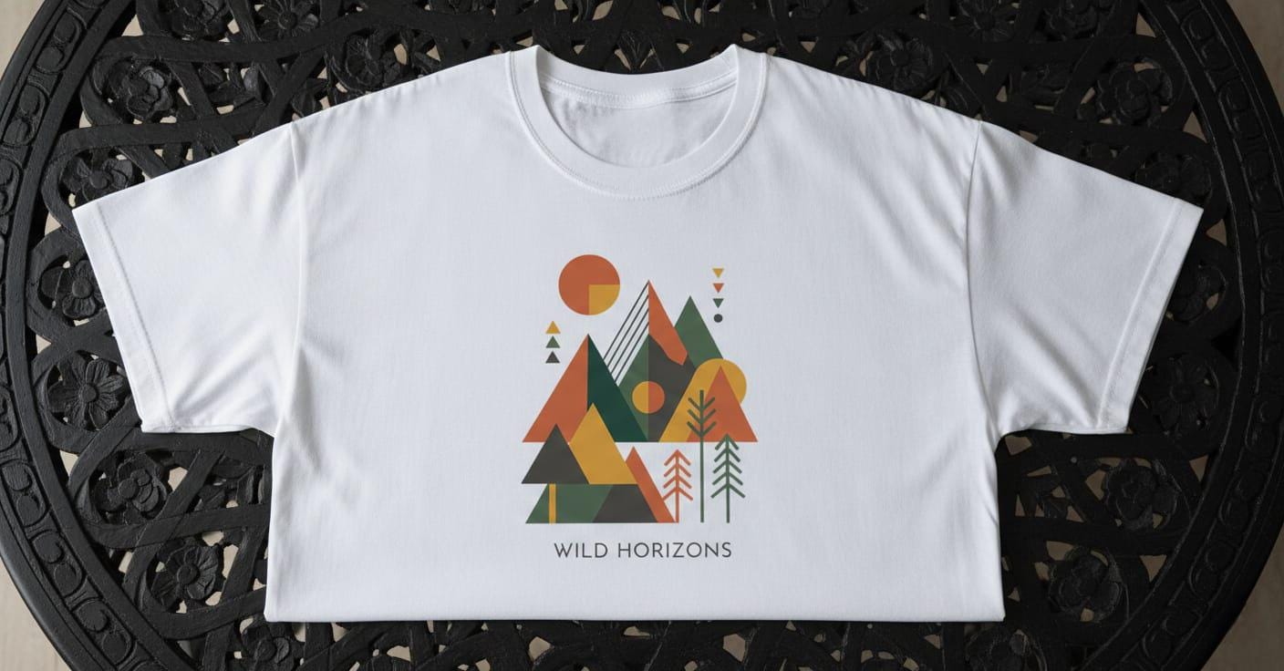 Explore the intersection of nature and modern design with our 'Wild Horizons' tee. This piece features a striking minimalist geometric landscape, using sharp triangles and clean lines to represent majestic mountains and towering pines. With its earthy mid-century color palette and abstract sun motifs, it offers a sophisticated take on the traditional outdoor graphic. It’s the perfect fit for design enthusiasts, minimalist adventurers, and those who appreciate a clean, Scandinavian-inspired aesthetic