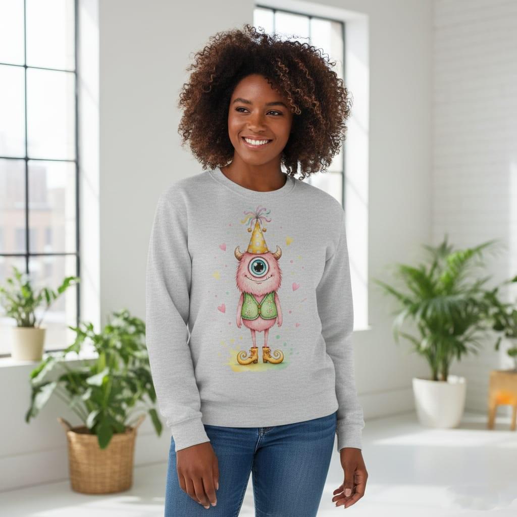 Spread a little love and magic with our Watercolor Pink Party Monster tee! This sweet, one-eyed creature is ready for a celebration, wearing a charming daisy-patterned green vest and a festive polka-dot party hat. Surrounded by floating hearts and soft colorful confetti, this design brings a heartwarming touch to any occasion. Its delicate storybook aesthetic makes it the perfect choice for girl's birthday outfits, nursery wall decor, or a magical gift for anyone who believes in friendly monsters and flower power