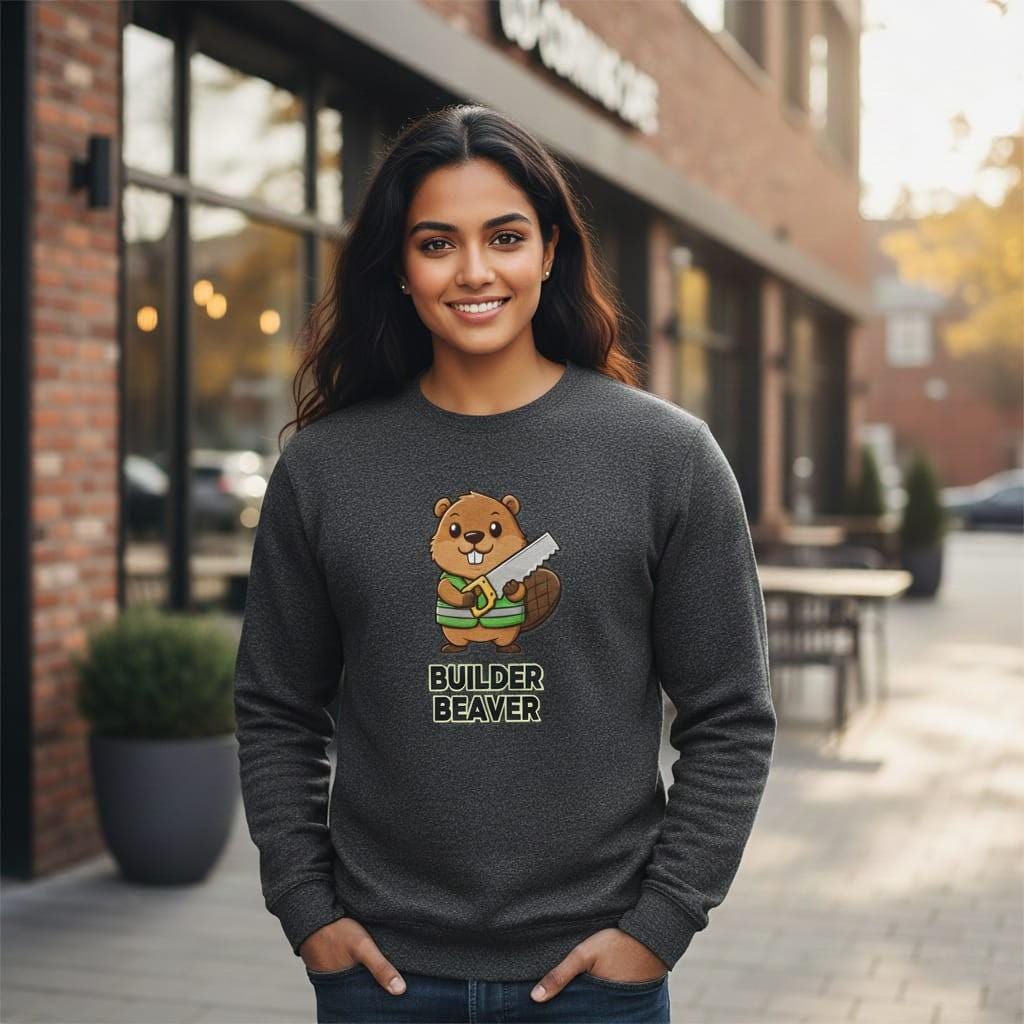 This design is special because it turns the builder theme into an adorable character graphic—a cute beaver in a safety vest holding a handsaw, paired with bold text “BUILDER BEAVER” for a clean, easy-to-read print; the simple layout works great on kids shirts, classroom themes, contractor gifts, stickers, and DIY projects, delivered as a high-resolution digital download (digital item only; colors may vary slightly by screen and printer).