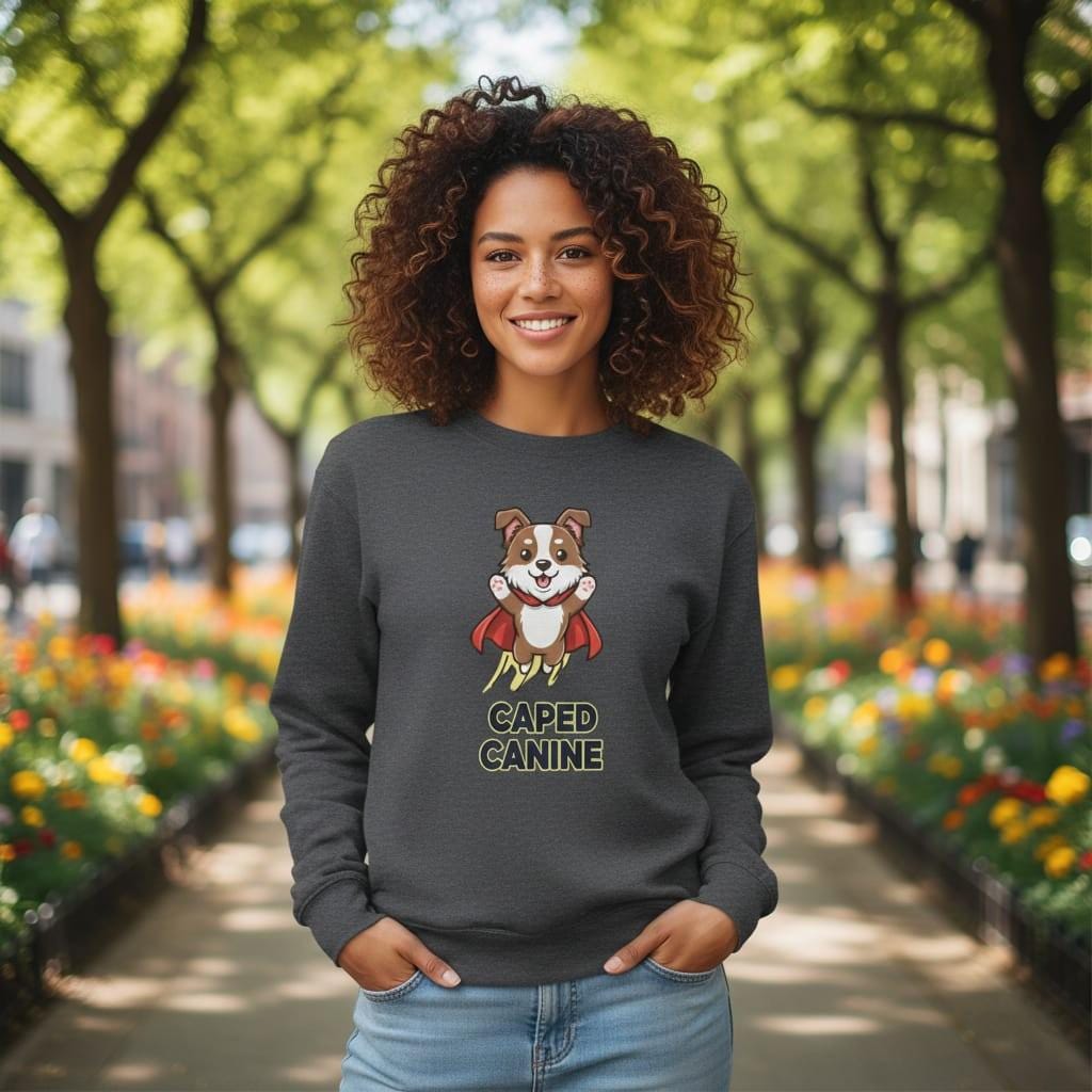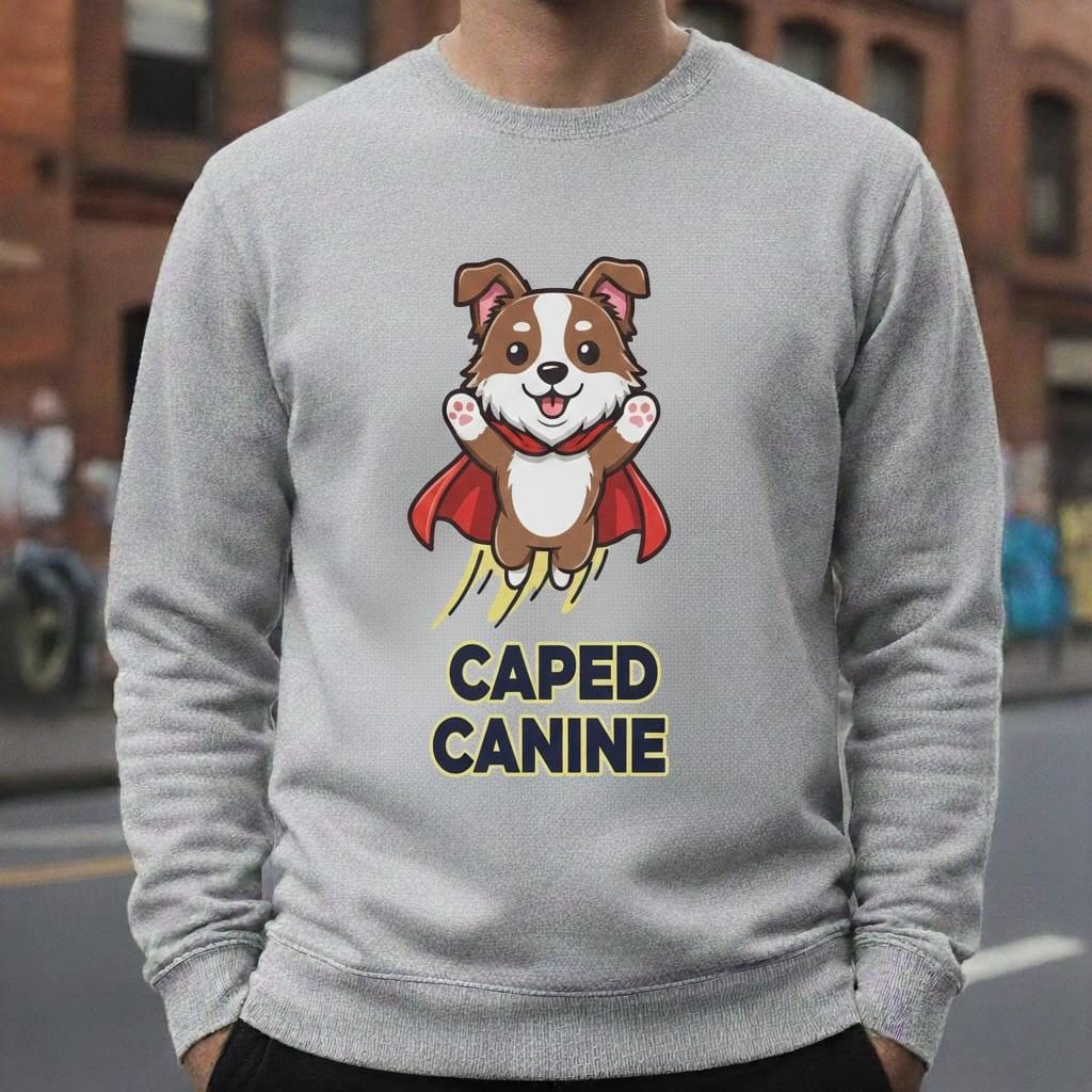 This design is special because it turns a lovable puppy into a tiny superhero—an adorable dog flying upward with a red cape and happy expression, paired with bold text “CAPED CANINE” for a clean, high-impact look that reads well at any size; it’s perfect for kids shirts, dog lover gifts, stickers, party favors, and playful pet-themed projects, delivered as a high-resolution digital download (digital item only; colors may vary slightly by screen and printer).