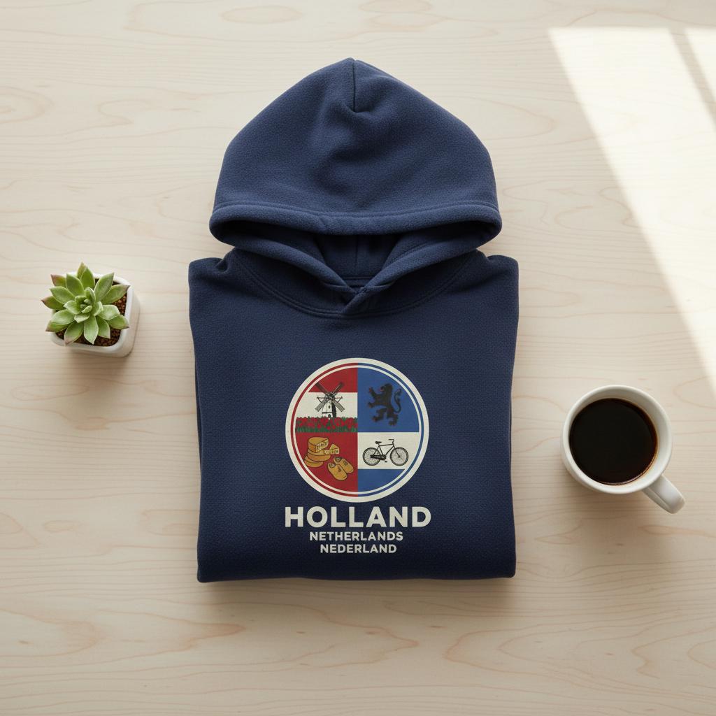 This design is special because it packs classic Dutch icons into one clean, souvenir-style badge: a windmill and tulip field, a bold lion symbol, cheese and wooden clogs, and a bicycle, finished with the stacked text “HOLLAND / NETHERLANDS / NEDERLAND” for instant destination recognition; it’s perfect for travel lovers, expats, Netherlands fans, heritage gifts, vacation shirts, stickers, mugs, and scrapbook projects, delivered as a high-resolution digital download (digital item only; colors may vary slightly by screen and printer).