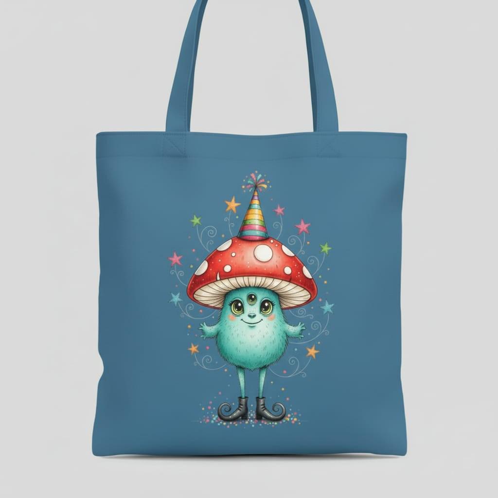 This design is special because it blends whimsical woodland charm with a party-ready vibe: a fluffy teal monster wearing a giant red-and-white toadstool mushroom hat topped with a rainbow party cone, surrounded by sparkling stars and confetti swirls for a magical celebration look; the bright hand-drawn details make it perfect for birthday themes, kids crafts, invitations, stickers, sublimation, tees, mugs, scrapbooks, and planner decals, delivered as a high-resolution digital download (digital item only; colors may vary slightly by screen and printer).
