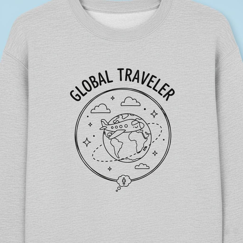 This design is special because it captures the spirit of nonstop adventure in a crisp, scalable one-color line-art badge: a detailed globe with an airplane circling along a dotted flight path, framed by clouds and stars and topped with the “GLOBAL TRAVELER” headline for instant wanderlust vibes; the clean outline style is ideal for Cricut/Silhouette cutting, vinyl decals, shirts, tote bags, mugs, stickers, planners, and travel-themed gifts, delivered as a high-resolution digital download (digital item only; colors may vary slightly by screen and printer).