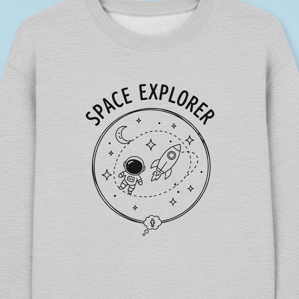This design is special because it captures the wonder of space adventure in a crisp, scalable one-color line-art badge: a cute astronaut floating alongside a rocket with an orbital dotted path, surrounded by stars and a crescent moon and topped with the “SPACE EXPLORER” headline for instant cosmic vibes; the clean outline style is perfect for printing on shirts, tote bags, mugs, stickers, planners, and space-themed gifts, delivered as a high-resolution PNG digital download (digital item only; colors may vary slightly by screen and printer).