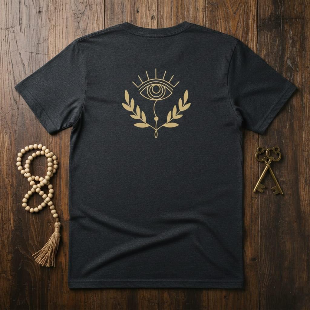 This design is special because it delivers a clean, modern mystical look with timeless symbolism: a minimalist gold line-art “evil eye” motif with bold lashes and a delicate hanging charm, framed by elegant laurel leaves for a balanced, logo-like composition that prints beautifully; the simple high-contrast style makes it ideal for sublimation on shirts, hoodies, tote bags, mugs, tumblers, stickers, and branding-style witchy/boho projects, delivered as a high-resolution PNG digital download (digital item only; colors may vary slightly by screen and printer).