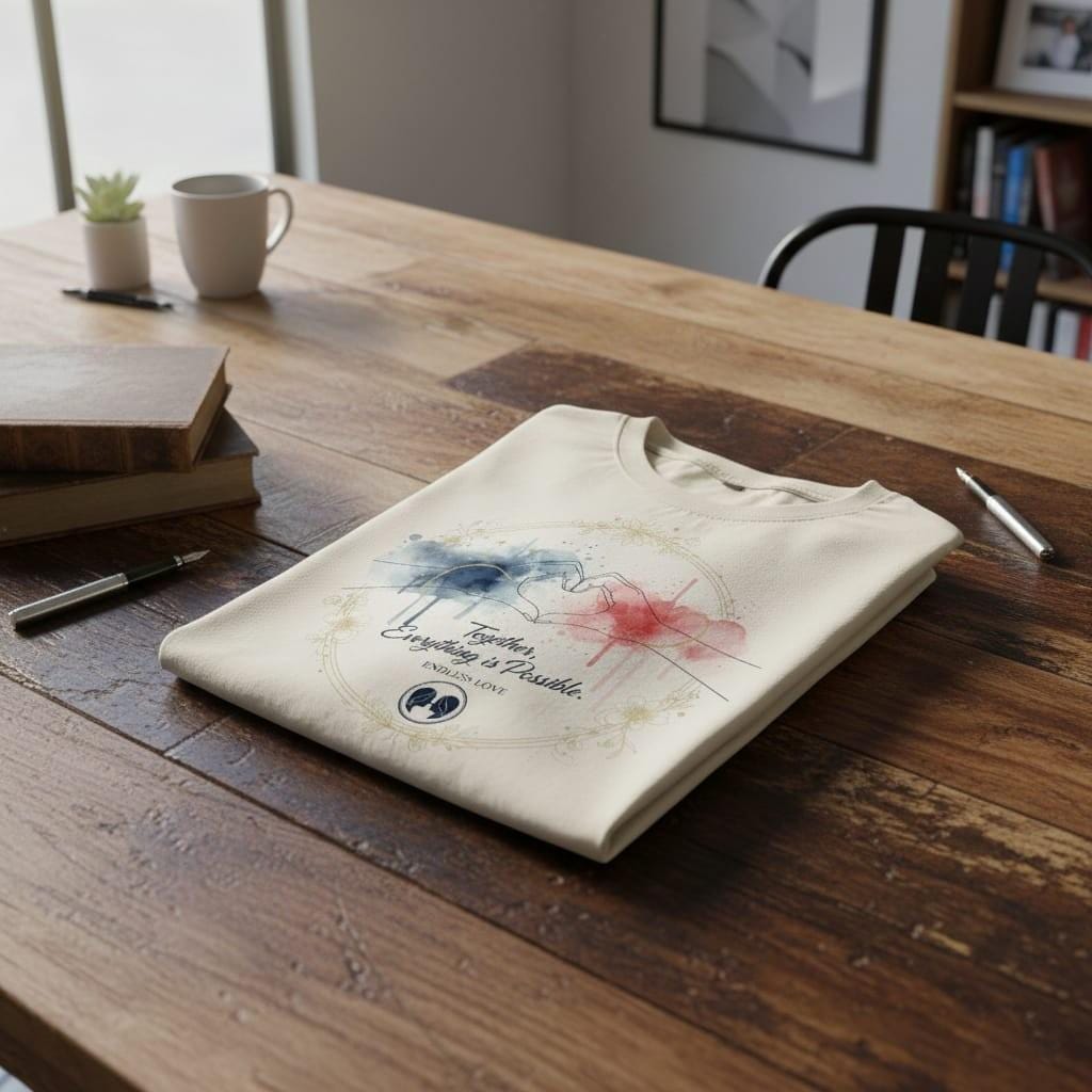 This romantic “Together, Everything is Possible” design features two minimalist line-art hands forming a heart over a dreamy split watercolor wash, framed by an elegant floral circle with subtle gold-style accents—perfect as a meaningful Valentine’s Day gift for couples (great for cards, wall prints, stickers, T‑shirts, mugs, and keepsake décor); delivered as a high-resolution PNG digital download (digital product only; colors may vary slightly by screen and printer).