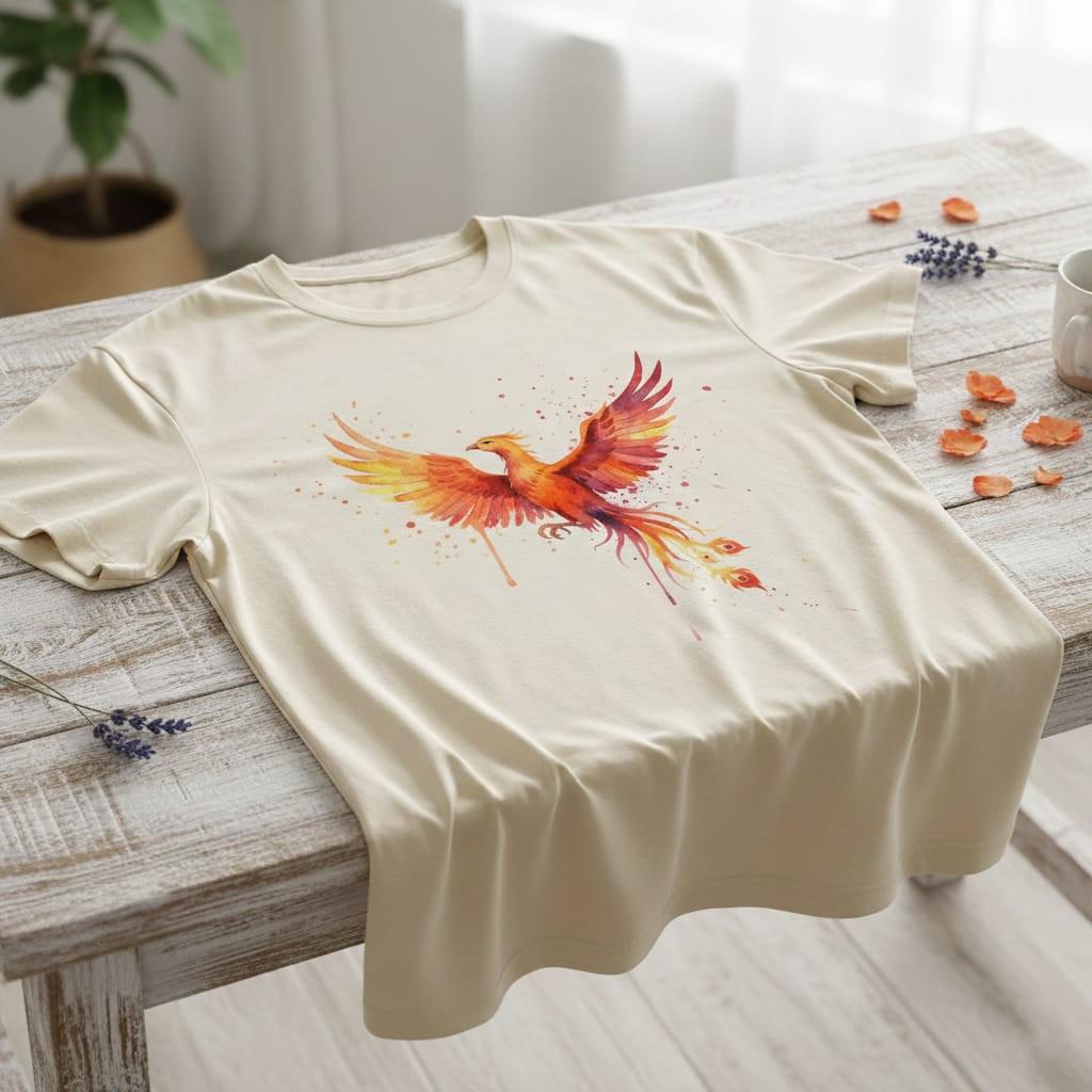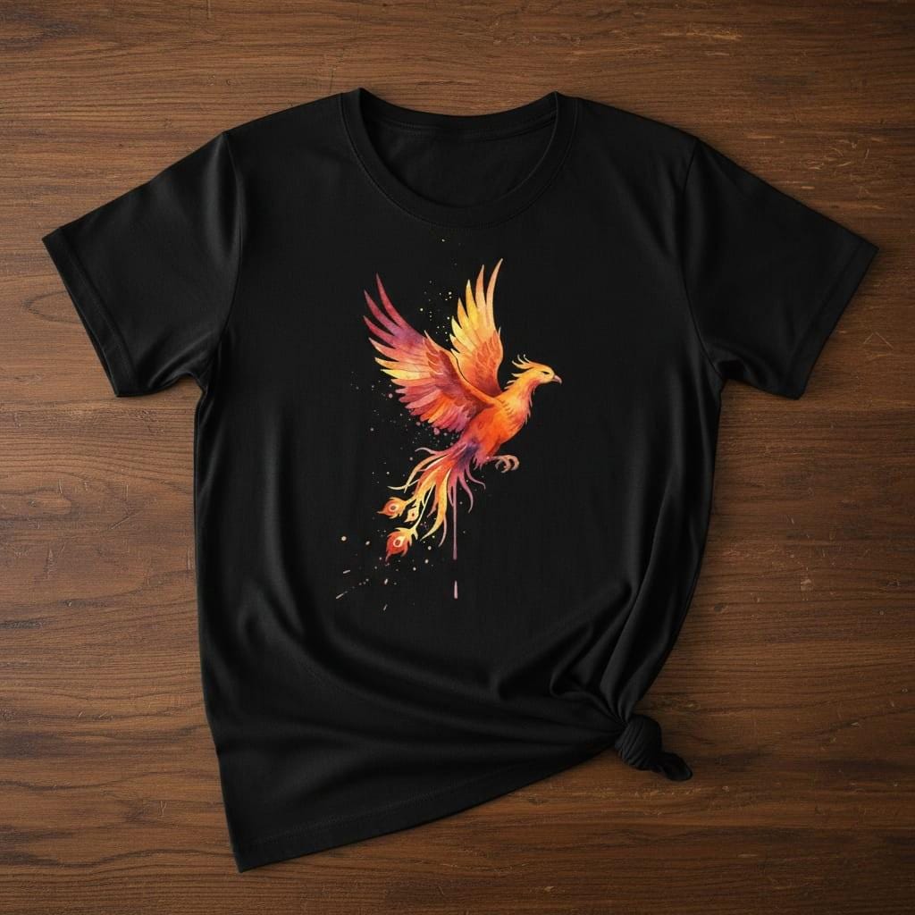 This striking watercolor phoenix artwork captures a fiery mythic bird in flight with vibrant flame-toned wings, flowing tail feathers, and dynamic splatter details—perfect for bold creations like wall prints, stickers, apparel, journals, branding elements, invitations, and fantasy-themed décor; delivered as a high-resolution PNG digital download with a transparent background for easy use on any project (digital product only; colors may vary slightly by screen and printer).