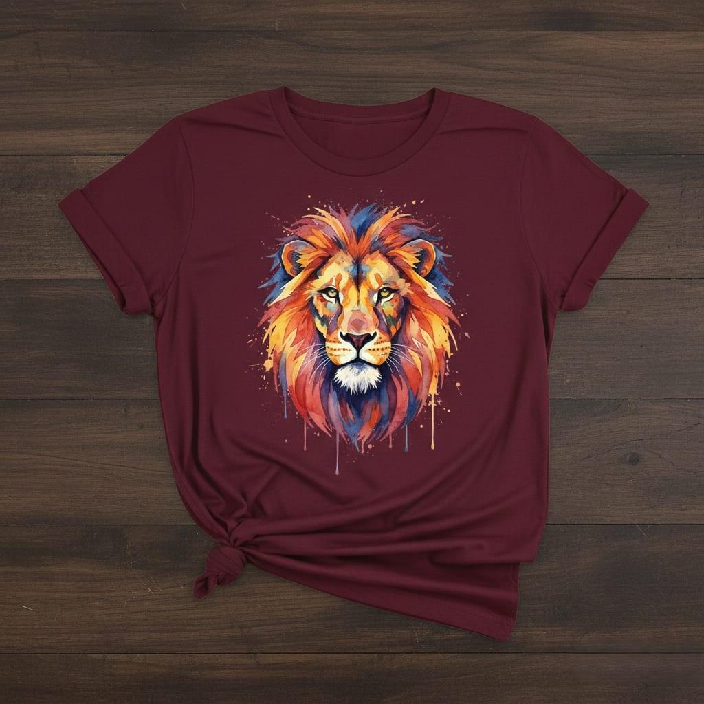 This bold watercolor lion head artwork combines rich oranges, reds, purples, and deep blues with energetic splatter and drip effects to create a powerful, modern wildlife portrait—perfect for wall art, posters, t-shirts, stickers, branding, journals, and safari/boho décor; delivered as a high-resolution PNG digital download with a transparent background for easy use on any design (digital product only; colors may vary slightly by screen and printer).
