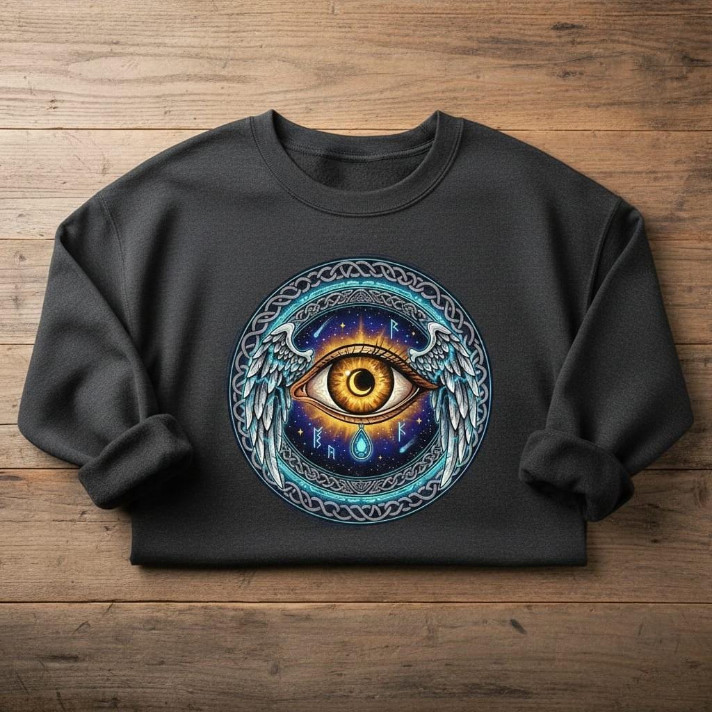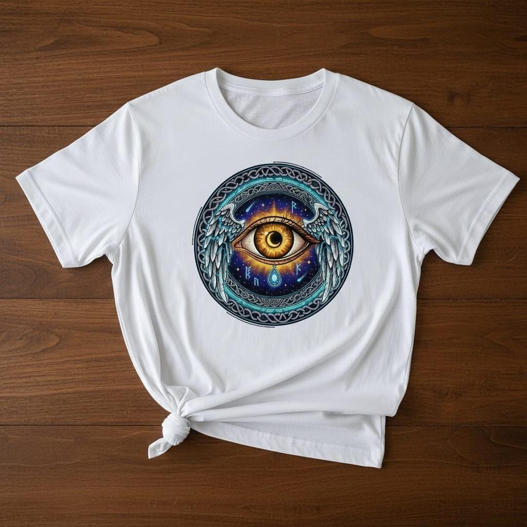 This enchanting winged mystic eye design pairs a glowing golden iris with a crescent moon pupil, angelic wings, and a detailed Celtic knot circular frame, finished with runes, stars, and a radiant cosmic backdrop—ideal for stickers, tarot/witchy branding, altar décor, posters, journals, apparel, and fantasy-themed creations; delivered as a high-resolution PNG digital download with a transparent background for easy use on any project (digital product only; colors may vary slightly by screen and printer).