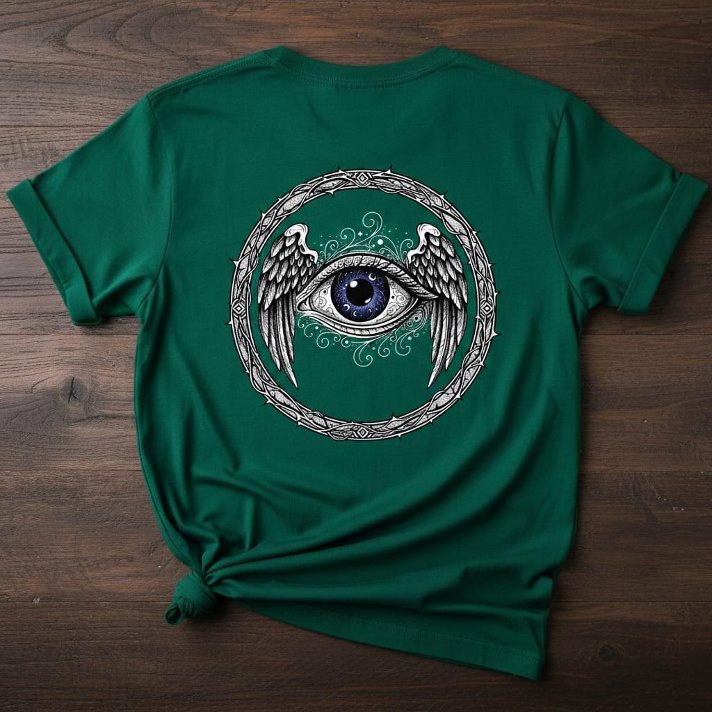This dramatic winged eye illustration blends crisp black-and-white line art with ornate filigree, a thorny circular frame, and a deep cosmic iris filled with moons and stars—creating a bold dark-fantasy/occult aesthetic that’s perfect for stickers, tattoos, gothic décor, tarot-themed branding, journals, posters, and apparel; delivered as a high-resolution PNG digital download with a transparent background for effortless use in any design (digital product only; colors may vary slightly by screen and printer).
