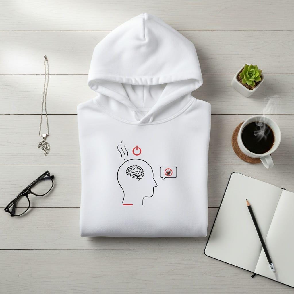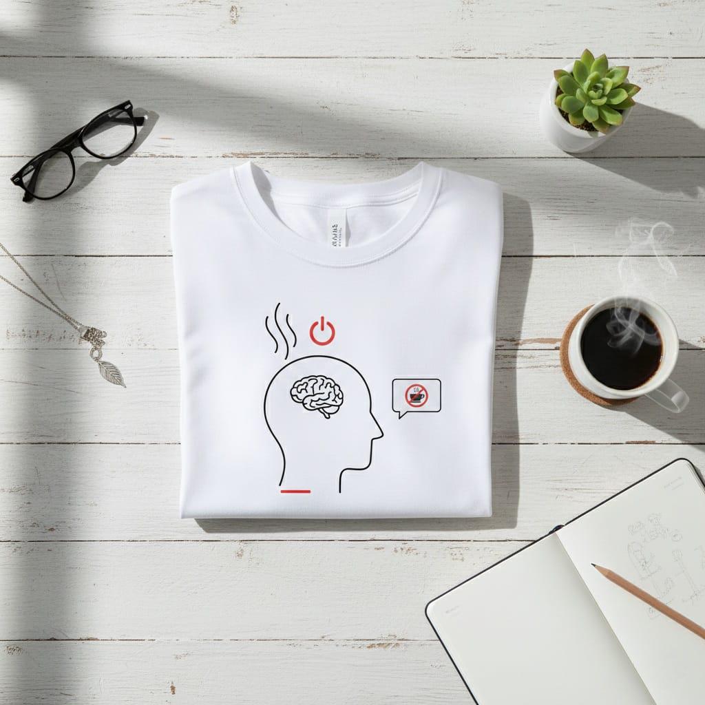 Visualize the ultimate "system shutdown" with this minimalist "Mental Burnout" digital illustration; featuring a sleek line-art silhouette of a human head with an overheating brain, this design is crowned with a red "power off" symbol and a desperate thought bubble showing that even coffee is no longer an option; the clean, modern aesthetic with sharp red accents perfectly captures the feeling of cognitive overload and the need for a total reset; this high-resolution transparent PNG is a versatile choice for mental health awareness projects, relatable office humor stickers, "mood" graphics for digital planners, and engaging social media content for students and professionals; whether you're designing for a wellness brand or creating a gift for a chronically tired friend, this poignant icon offers a sophisticated way to say "I'm officially out of service"; easy to layer on any background for a professional and impactful look (digital product only; colors may vary slightly by screen and printer).
