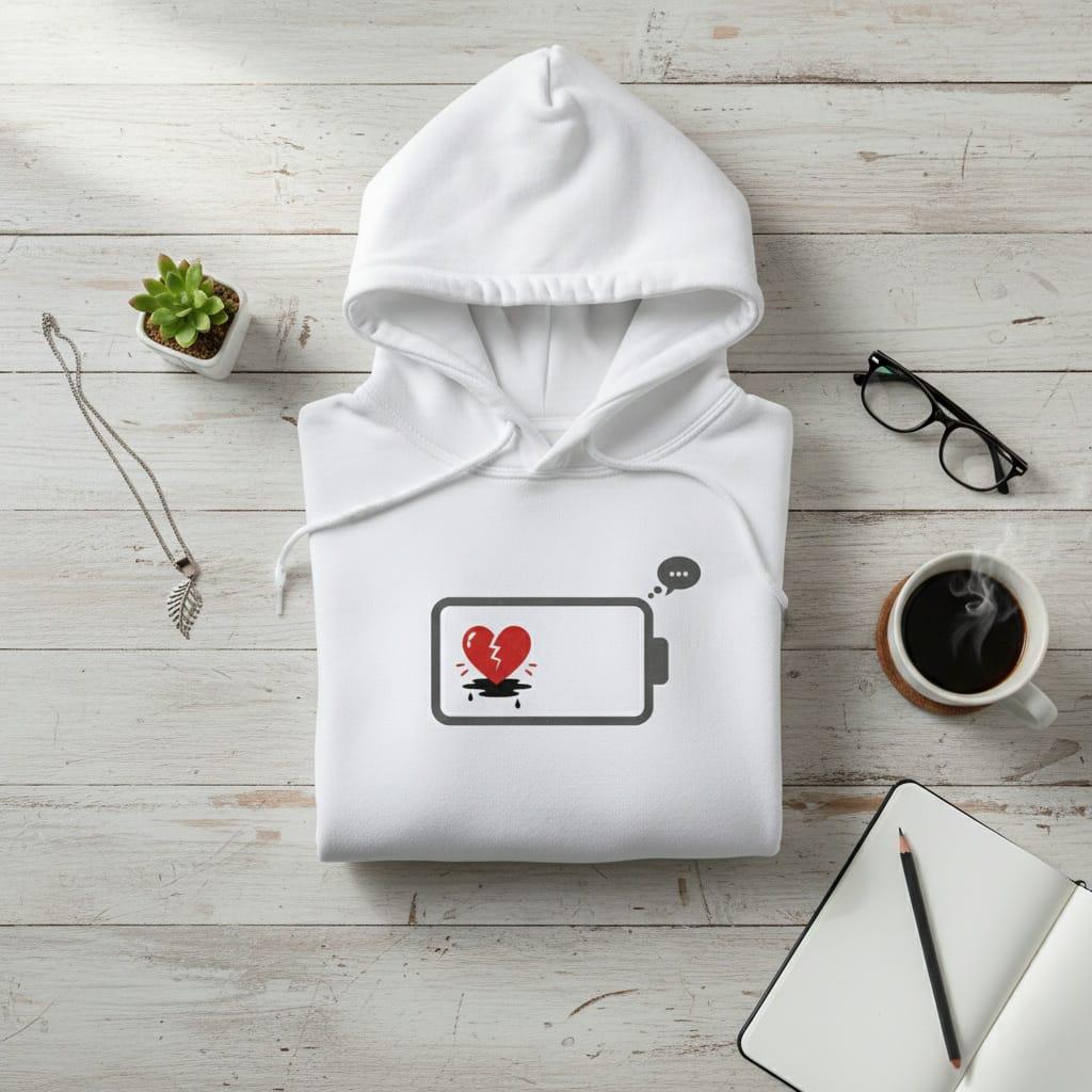 Speak volumes without saying a word with this powerful "Emotional Battery" digital illustration; featuring a minimalist battery frame containing a cracked red heart that appears to be leaking, topped with a silent "..." thought bubble, this design perfectly captures the essence of heartbreak and mental exhaustion; the subtle textured outlines and flat-art style give it a modern, indie aesthetic that resonates with anyone going through a tough time; this high-resolution transparent PNG is an ideal choice for creating meaningful mental health awareness products, "mood" stickers for journals, expressive apparel, and relatable social media content; whether you're designing for a personal project or a gift for someone needing emotional support, this poignant icon offers a unique way to visualize the feeling of being "emotionally drained"; easy to use on both dark and light backgrounds for a clean, impactful look (digital product only; colors may vary slightly by screen and printer).