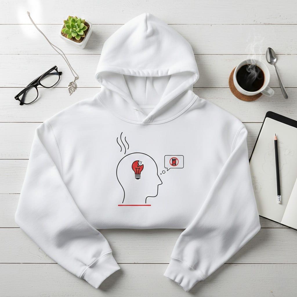 Embrace the power of disconnecting with this thought-provoking "Digital Detox" digital illustration; featuring a minimalist line-art silhouette of a human head, this design captures the moment of creative exhaustion with a broken red lightbulb and rising smoke, paired with a clear "no smartphone" thought bubble; the clean, modern aesthetic with striking red accents perfectly visualizes the need for mental clarity in a hyper-connected world; this high-resolution transparent PNG is an excellent choice for mental health awareness campaigns, "unplug" themed stickers, minimalist apparel for creatives, and wellness-focused social media content; whether you're a designer struggling with a creative block or a tech professional advocating for digital well-being, this poignant graphic serves as a visual reminder to prioritize your peace of mind; easy to integrate into any professional or personal project for a sophisticated and meaningful impact (digital product only; colors may vary slightly by screen and printer).