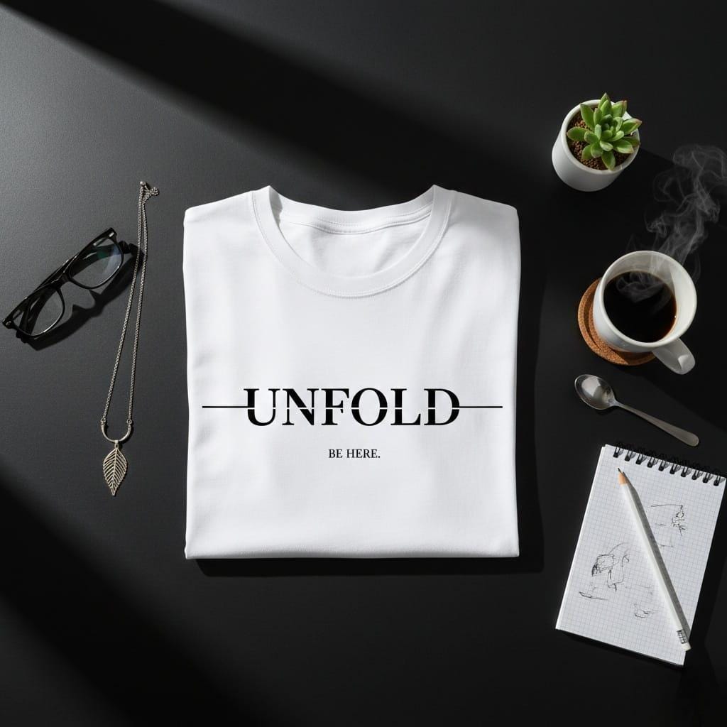 Step into a state of presence with this "Unfold - Be Here" minimalist digital masterpiece; a design that masterfully blends high-end editorial aesthetics with a profound spiritual message; the bold serif typography of "UNFOLD" is artfully bisected by a sharp horizontal line, symbolizing a horizon of possibilities or the threshold of a new chapter; paired with the grounding "BE HERE." command, this graphic encourages a lifestyle of mindfulness and intentionality; this high-resolution transparent PNG is the ultimate choice for "quiet luxury" streetwear, minimalist home office wall art, high-end digital planner covers, and sophisticated social media branding; perfect for life coaches, yoga practitioners, and lovers of modern Scandinavian or Japanese-inspired design; its timeless black-and-white contrast ensures it makes a powerful statement on everything from premium cotton tote bags to sleek ceramic mugs; let this design be a daily anchor, reminding you that life doesn't just happen—it unfolds, and you are exactly where you need to be (digital product only; colors may vary slightly by screen and printer).