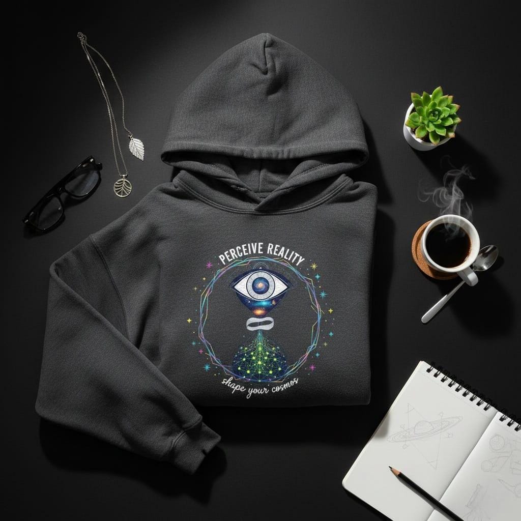 Master the art of manifestation with this "Cosmic Hourglass" digital illustration; a profound visual metaphor that challenges you to perceive reality through the lens of the universe; the design features a mystical hourglass where the top bulb holds a swirling galaxy and planets, crowned by an "all-seeing" third eye, while the bottom bulb transforms cosmic energy into a glowing sacred geometry grid; an infinity symbol elegantly cinches the waist, representing the eternal flow of time and creation; surrounded by a vibrant geometric halo and shimmering stars, this high-resolution transparent PNG is a powerful choice for spiritual journals, meditation room decor, high-end streetwear sublimation, and esoteric-themed digital planners; perfect for those who believe that our thoughts shape the very fabric of our universe; this intricate graphic offers a sophisticated, multi-layered aesthetic that resonates with seekers of wisdom and lovers of celestial art (digital product only; colors may vary slightly by screen and printer).