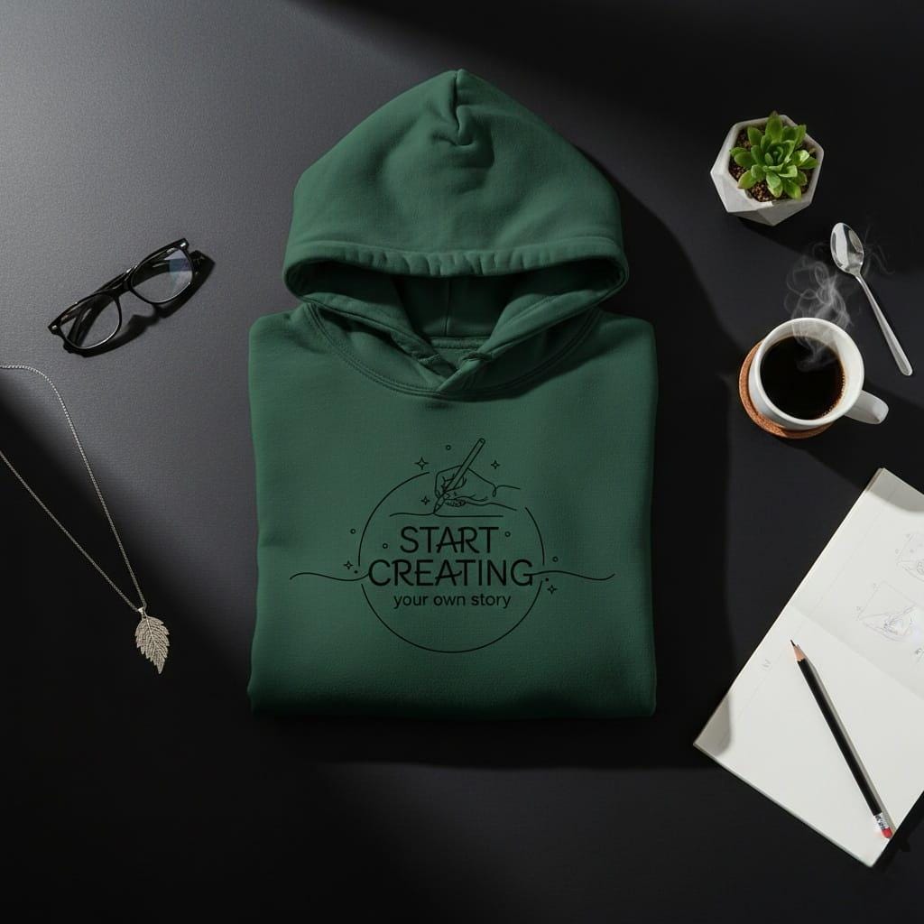 Take the pen and define your destiny with this "Start Creating Your Own Story" digital illustration; a masterpiece of minimalist line art that celebrates the power of personal narrative and creativity; the design features a gracefully illustrated hand in the act of writing, surrounded by a celestial halo of stars and a grounding circular frame that symbolizes the world of possibilities; the sophisticated mix of bold sans-serif and clean lowercase typography creates a modern, editorial feel that resonates with writers, dreamers, and goal-getters alike; this high-resolution transparent PNG is an ideal choice for customizing premium journals, aesthetic laptop stickers, motivational wall art for home offices, and unique "author-core" apparel; perfect for bloggers, students, life coaches, or anyone embarking on a new chapter in life; its timeless black-and-white aesthetic ensures it looks stunning on any surface, from recycled paper notebooks to minimalist tote bags; let this design be your daily inspiration to stop waiting for the right moment and start writing the life you've always imagined (digital product only; colors may vary slightly by screen and printer).