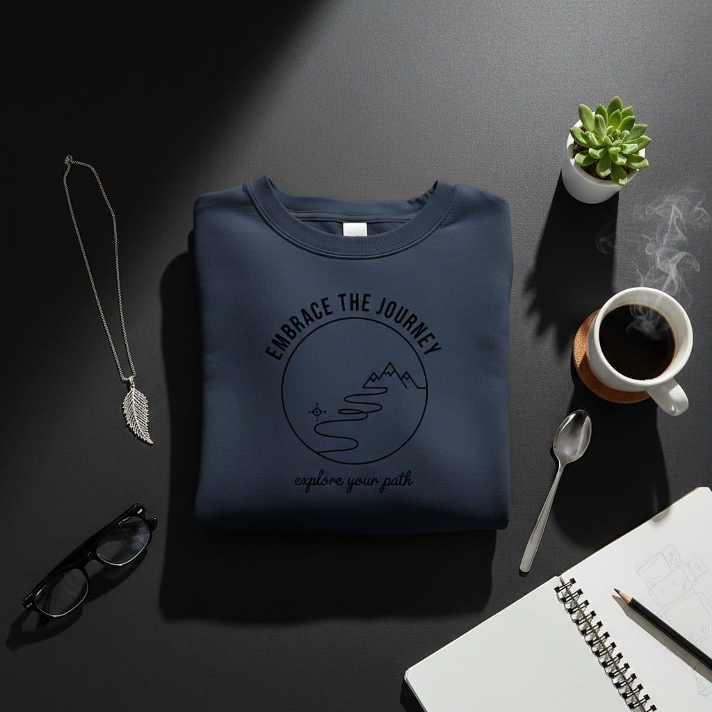Celebrate the beauty of the process with this "Embrace The Journey" digital illustration; a masterfully crafted minimalist badge that speaks to the heart of every adventurer and seeker; the design features a clean, winding line representing life's unpredictable paths, leading toward majestic mountain peaks that symbolize our highest goals and challenges; a delicate compass rose sits at the start, acting as a symbol of inner guidance and intuition; the combination of bold, curved sans-serif typography and elegant, flowing script creates a perfect visual harmony that feels both modern and adventurous; this high-resolution transparent PNG is the ultimate asset for creating premium outdoor-themed apparel, aesthetic water bottle stickers, motivational travel journals, and serene wall art for home offices; whether you're a hiker, a digital nomad, or someone navigating a new chapter in life, this design serves as a grounding reminder to enjoy every step of the way; its classic black-and-white line art style ensures it integrates seamlessly into any creative project, offering a touch of sophisticated wanderlust (digital product only; colors may vary slightly by screen and printer).