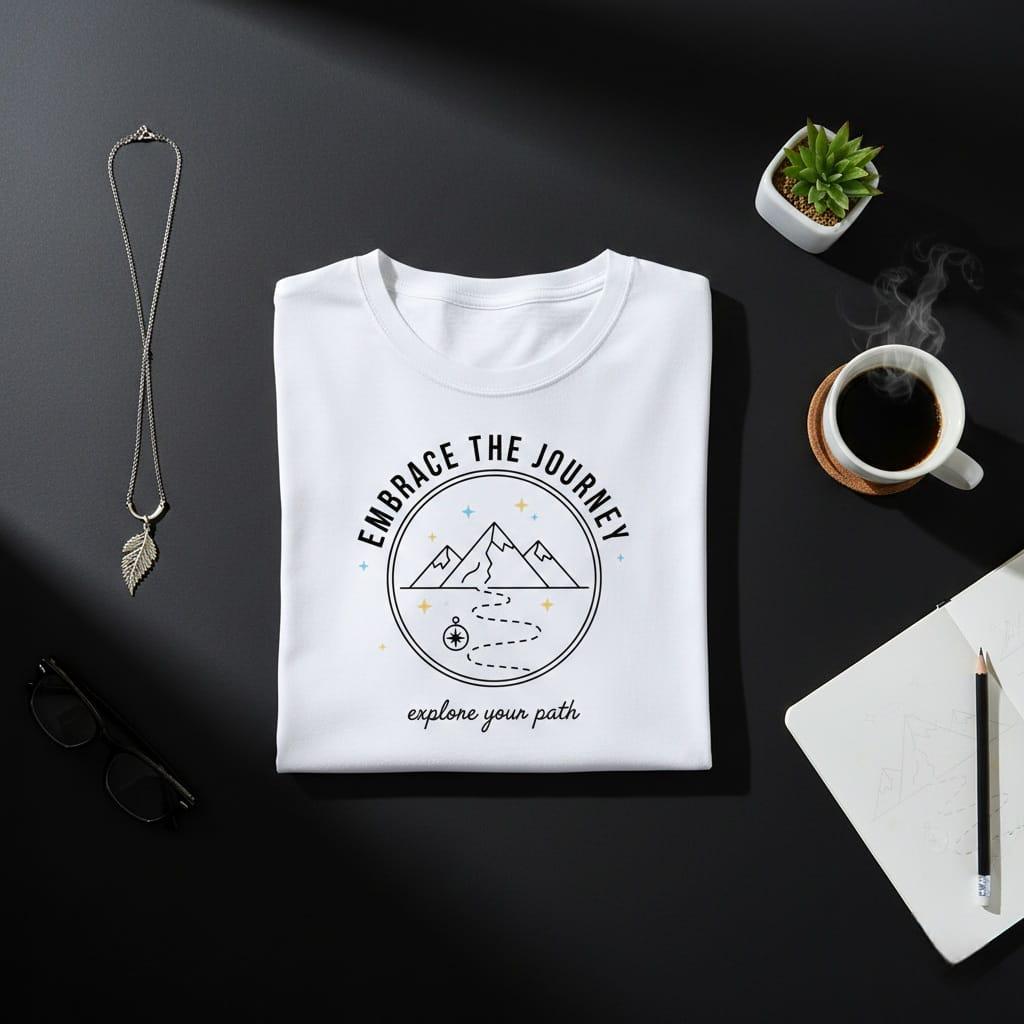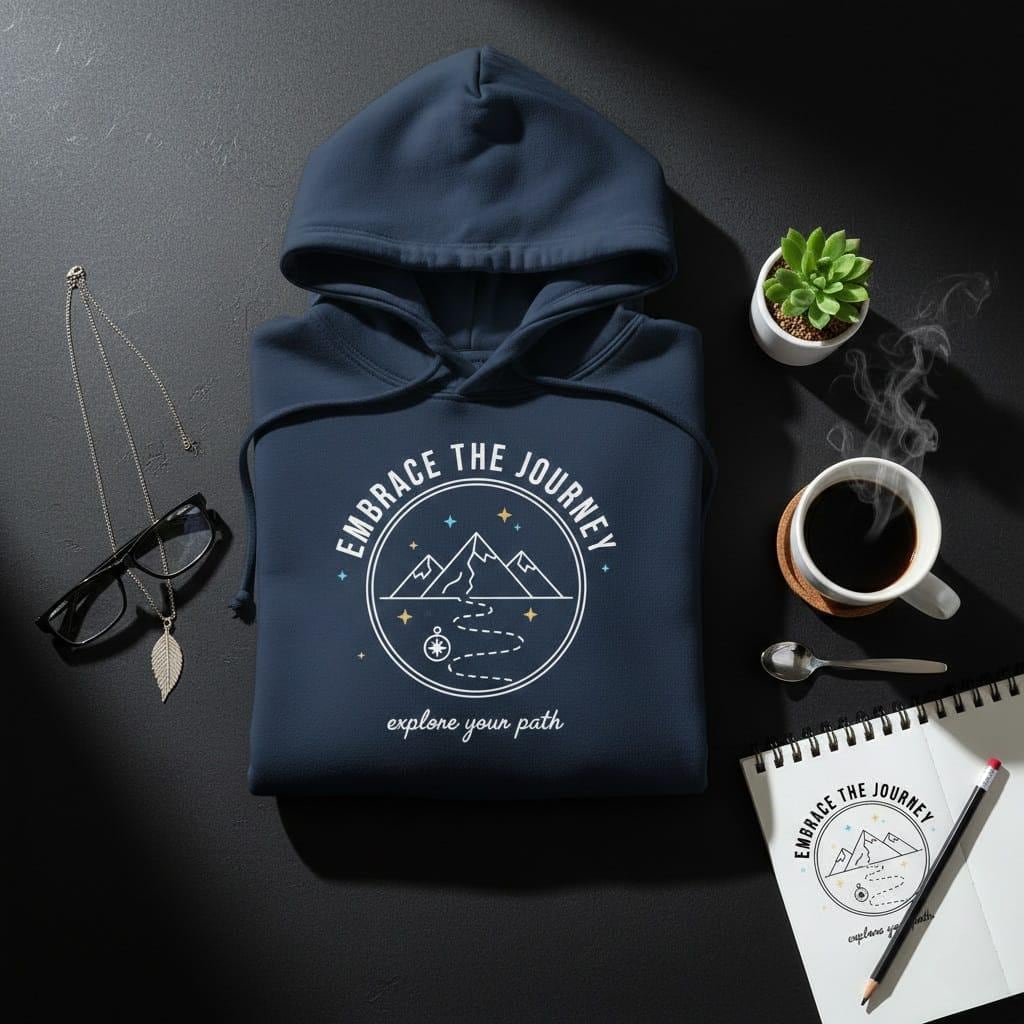 Chart your own course and celebrate the spirit of adventure with this "Embrace The Journey" digital illustration; a masterfully designed minimalist badge that captures the essence of wanderlust and personal discovery; the design features a winding dotted path leading toward majestic mountain peaks, symbolizing the steady progress we make toward our greatest aspirations; at the start of the trail sits a classic compass rose, a timeless symbol of guidance, intuition, and staying true to one's direction; the scene is brought to life with delicate blue and yellow stars that add a touch of magic and celestial wonder to the rugged landscape; with its perfect blend of bold, arched sans-serif and elegant, flowing script typography, this graphic offers a balanced and modern aesthetic; this high-resolution transparent PNG is an ideal choice for creating premium outdoor-themed apparel, aesthetic travel journal stickers, motivational water bottle decals, and serene wall art for adventure-seekers; whether you're a hiker, a backpacker, or someone embarking on a new life chapter, this artwork serves as a grounding reminder that the path itself is just as important as the destination; its clean line-art style and subtle color accents ensure it looks stunning on everything from minimalist tote bags to digital planner pages (digital product only; colors may vary slightly by screen and printer).