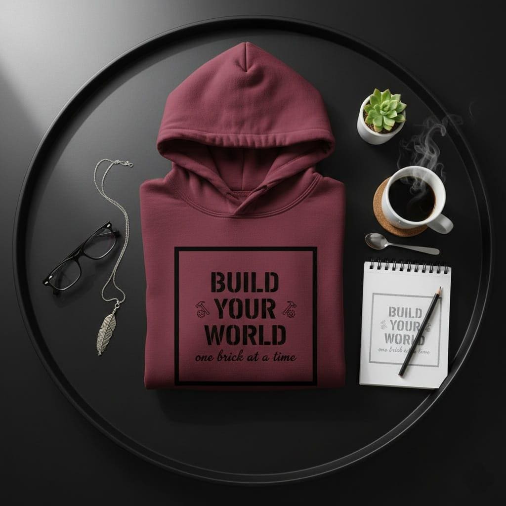 Take pride in the process and become the architect of your own reality with this "Build Your World" digital typography; a structured minimalist design created for the dreamers who aren't afraid to get their hands dirty; the artwork is enclosed in a solid square frame, symbolizing stability and the boundaries of a well-planned life; the core message is delivered in a bold, stencil-style sans-serif font that evokes the raw energy of a construction site and the permanence of industrial craftsmanship; flanking the text are minimalist hammer and gear icons, representing the tools of action and the mechanics of progress; beneath this heavy foundation, the phrase "one brick at a time" is rendered in a graceful, flowing script, serving as a gentle reminder that monumental success is simply a collection of small, consistent efforts; this high-resolution transparent PNG is a perfect asset for creating professional workspace decor, motivational apparel for entrepreneurs, aesthetic laptop skins, and inspiring digital planner covers; whether you're building a business, a home, or a new version of yourself, this artwork serves as a visual blueprint for persistence; its timeless black-and-white aesthetic and "work-in-progress" charm ensure it stands out on everything from minimalist tech accessories to high-impact office wall art (digital product only; colors may vary slightly by screen and printer).