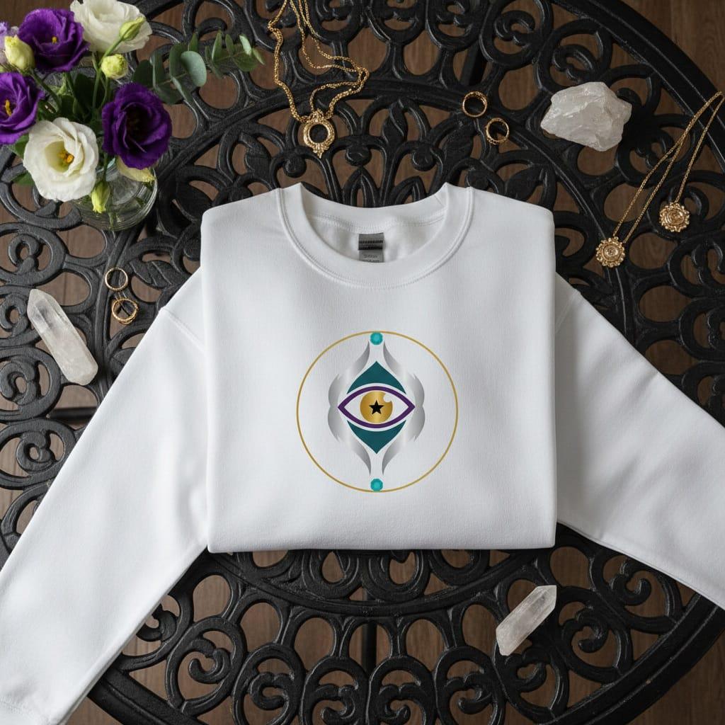 Step into a realm of geometric harmony and spiritual insight with this sophisticated "Celestial Vision" illustration; a masterfully designed piece that blends minimalist aesthetics with deep esoteric symbolism; featuring a striking golden iris centered with a bold black star pupil, this eye is set against a deep teal diamond backdrop and framed by elegant purple accents; the composition is further elevated by symmetrical silver flame-like curves and a delicate gold circular border, punctuated by two vibrant turquoise gemstones at the poles; this high-end aesthetic is perfect for modern wellness branding, tech-boho logos, and minimalist home decor; the clean lines and rich metallic gradients make it an exceptional choice for high-quality sublimation on t-shirts, sleek tech accessories, meditation room wall art, and digital planners; whether you are looking for a unique "Third Eye" inspired emblem or a standout piece of contemporary symbolic art, this high-resolution transparent PNG provides endless versatility for both personal and commercial crafting; its balanced and centered composition ensures it remains a timeless favorite for professional branding, sophisticated scrapbooking, and gallery-worthy minimalist prints; perfect for adding a touch of intellectual mystery and modern elegance to your digital or physical products (digital product only; colors may vary slightly by screen and printer).