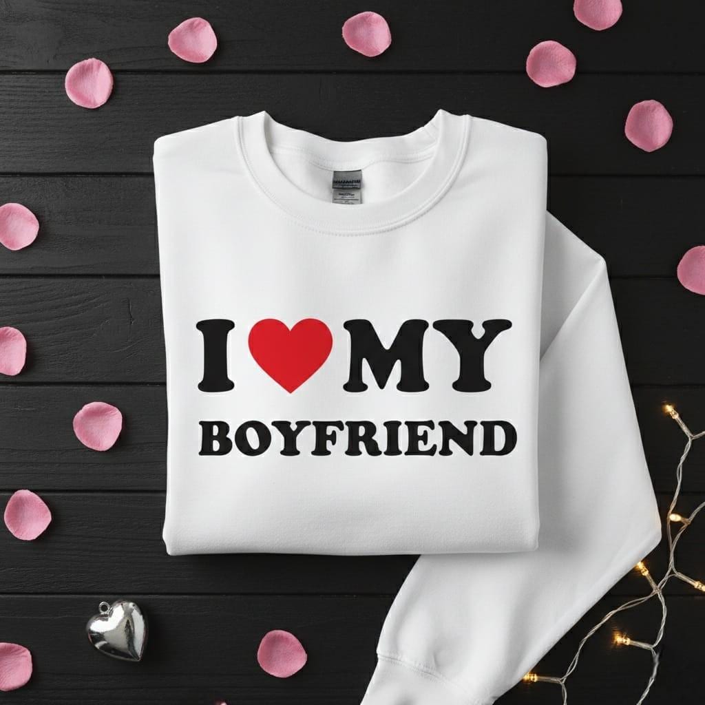 Celebrate your relationship with this iconic "I Love My Boyfriend" digital design; a timeless and bold statement piece crafted to be the ultimate gift for your boyfriend or a trendy self-gift for a proud partner; featuring classic heavy-serif typography and a vibrant red heart, this design captures the popular Y2K "baby tee" aesthetic that is taking social media by storm; it is the perfect choice for anyone looking for a straightforward yet stylish gift for their lover that screams devotion; this high-resolution transparent PNG is ideal for high-quality sublimation on trendy cropped tees, oversized hoodies, aesthetic coffee mugs, and laptop stickers; whether you are creating a personalized anniversary surprise or a "Sevgiliye Hediye" with a vintage vibe, this clean clipart ensures a professional finish on any DIY project; its high-contrast black and red palette makes it pop instantly on white or light-colored fabrics; perfect for adding a touch of nostalgic charm and bold affection to your digital or physical product line (digital product only; colors may vary slightly by screen and printer).