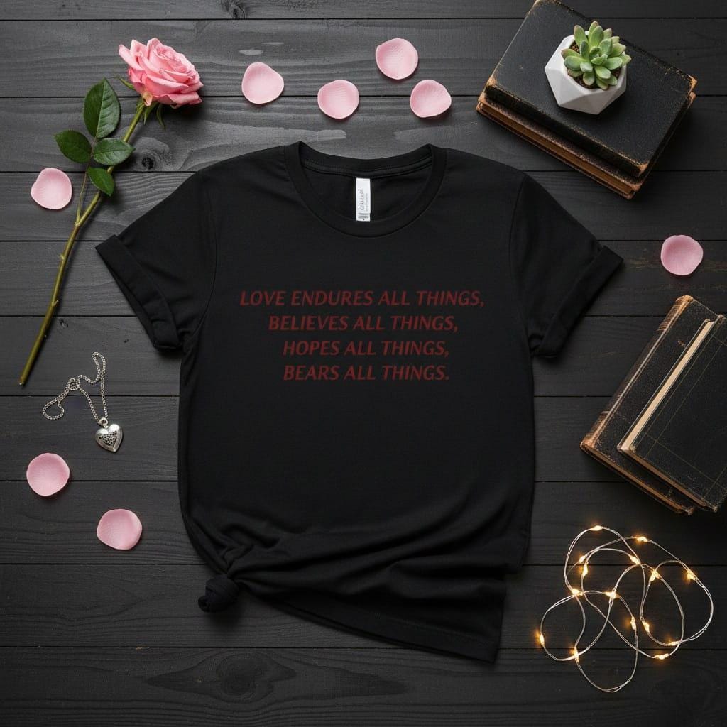 Celebrate the resilient and unconditional power of devotion with this "Love Endures All Things" digital design; a profound and spiritually rich masterpiece crafted to be a meaningful gift for your boyfriend or a deeply touching gift for your girlfriend this season; featuring elegant burgundy italic serif typography, this design brings the sacred words of 1 Corinthians 13:7 to life with sophisticated simplicity; it is the perfect choice for those seeking a soulful and enduring gift for their lover that symbolizes faith, hope, and lifelong commitment; this high-resolution transparent PNG is ideal for premium sublimation on wedding signage, anniversary keepsakes, aesthetic t-shirts, and personalized home decor; whether you are creating a bespoke wedding gift or a "Sevgiliye Hediye" that speaks to the heart's endurance, this clean typography clipart ensures a professional and high-end finish for all your DIY projects; its classic color palette and graceful font make it a timeless addition to any romantic or religious collection; perfect for adding a touch of divine grace and radiant love to your creative product line (digital product only; colors may vary slightly by screen and printer).