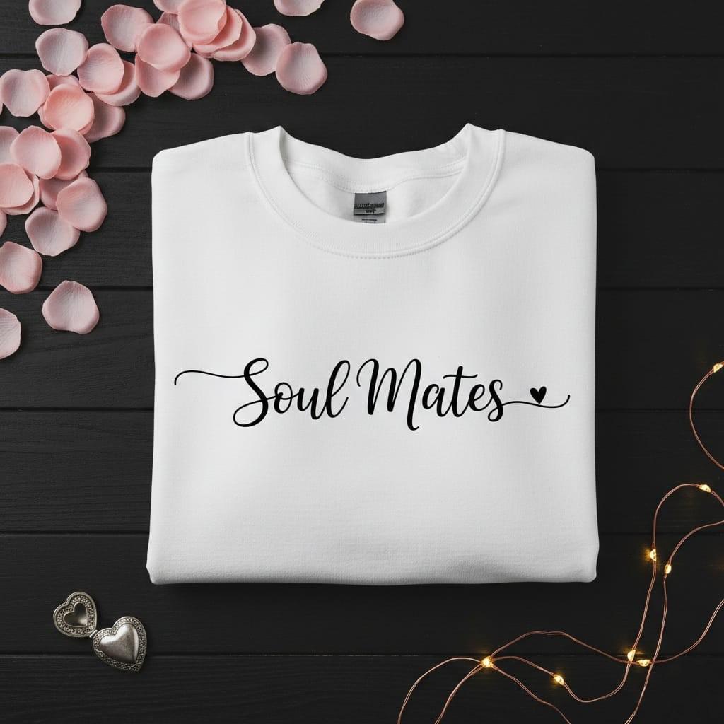 Celebrate the ultimate connection with this "Soul Mates" elegant digital design; a minimalist and deeply romantic masterpiece crafted to be a sentimental gift for your boyfriend or a heartfelt gift for your girlfriend this Valentine's Day; featuring a beautiful black cursive script that flows into a dainty hand-drawn heart, this design captures the essence of two souls destined to be together; it is the perfect choice for those seeking a sophisticated and meaningful gift for their lover that adds a touch of class to any item; this high-resolution transparent PNG is ideal for premium sublimation on matching couple sweatshirts, romantic bedroom wall decor, personalized wedding favors, and chic greeting cards; whether you are marking a milestone anniversary or creating a romantic keepsake that will be cherished for a lifetime, this versatile script clipart ensures a professional and high-end finish for all your DIY projects; its clean and airy composition makes it a standout addition to any "modern romantic" or "minimalist aesthetic" collection; perfect for adding a touch of calligraphic charm and radiant love to your creative product line (digital product only; colors may vary slightly by screen and printer).