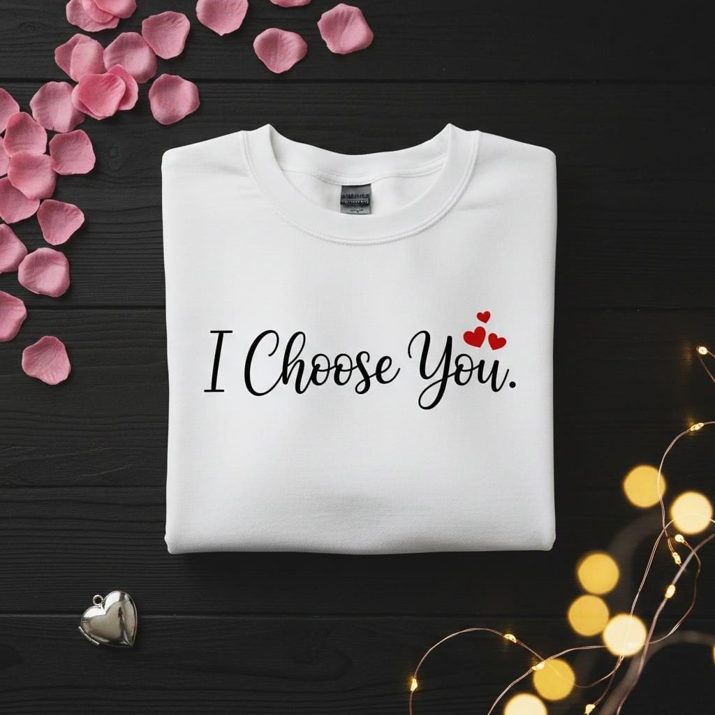 Celebrate your intentional love with a pop of color using this "I Choose You" elegant digital design; a minimalist and deeply romantic masterpiece featuring vibrant red hearts crafted to be a sentimental gift for your boyfriend or a heartfelt gift for your girlfriend this Valentine's Day; the beautiful black cursive script is perfectly accented by four dainty red hearts, capturing the essence of a joyful and conscious lifelong commitment; it is the perfect choice for those seeking a sophisticated yet playful gift for their lover that feels both modern and celebratory; this high-resolution transparent PNG is ideal for premium sublimation on white t-shirts, romantic throw pillows, personalized anniversary mugs, and custom Valentine's cards; whether you are celebrating a new engagement or years of happy marriage, this versatile script clipart ensures a professional and high-end finish for all your DIY projects; its clean composition and touch of color make it a standout addition to any "romantic aesthetic" or "holiday craft" collection; perfect for adding a touch of calligraphic charm and radiant love to your creative product line (digital product only; colors may vary slightly by screen and printer).