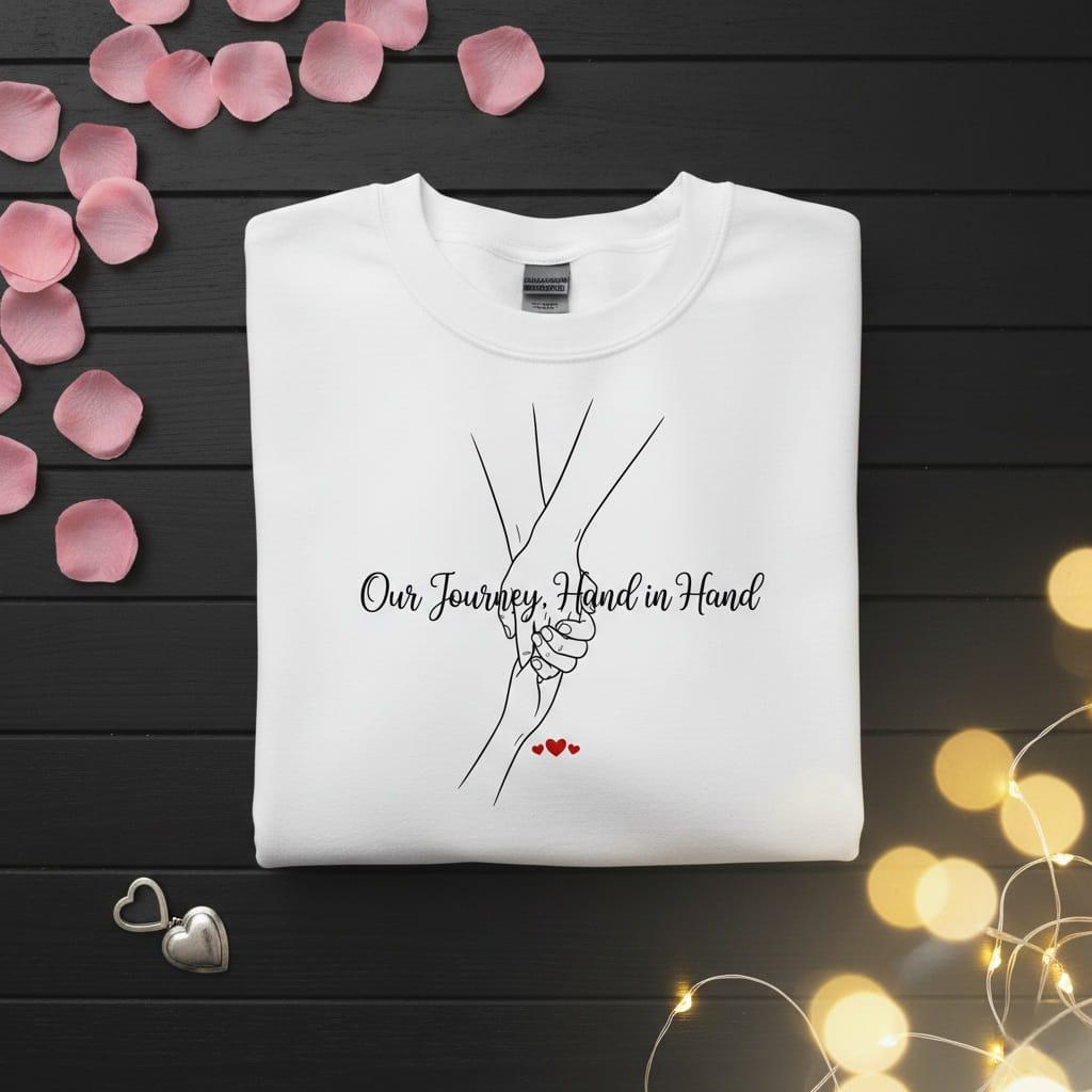 Celebrate the strength of your partnership with this "Our Journey, Hand in Hand" elegant digital design; a sophisticated and deeply romantic masterpiece featuring detailed hand-holding line art and vibrant red hearts, crafted to be a sentimental anniversary gift for your husband or a heartfelt gift for your wife this Valentine's Day; the beautiful black cursive script flows across a delicate illustration of two hands joined together, capturing the essence of support, unity, and a shared life path; it is the perfect choice for those seeking a modern and artistic gift for their partner that symbolizes walking through life together; this high-resolution transparent PNG is ideal for premium sublimation on matching couple t-shirts, minimalist hallway wall art, personalized anniversary blankets, and custom wedding guest books; whether you are celebrating a milestone anniversary, a new engagement, or the simple beauty of your daily journey, this versatile line art design ensures a professional and high-end finish for all your DIY projects; its timeless composition and trendy "hand-drawn" style make it a standout addition to any "partnership-themed" or "minimalist aesthetic" collection; perfect for adding a touch of calligraphic charm and radiant love to your creative product line (digital product only; colors may vary slightly by screen and printer).