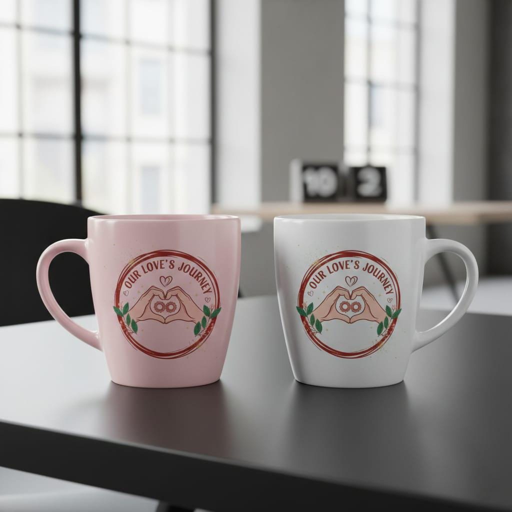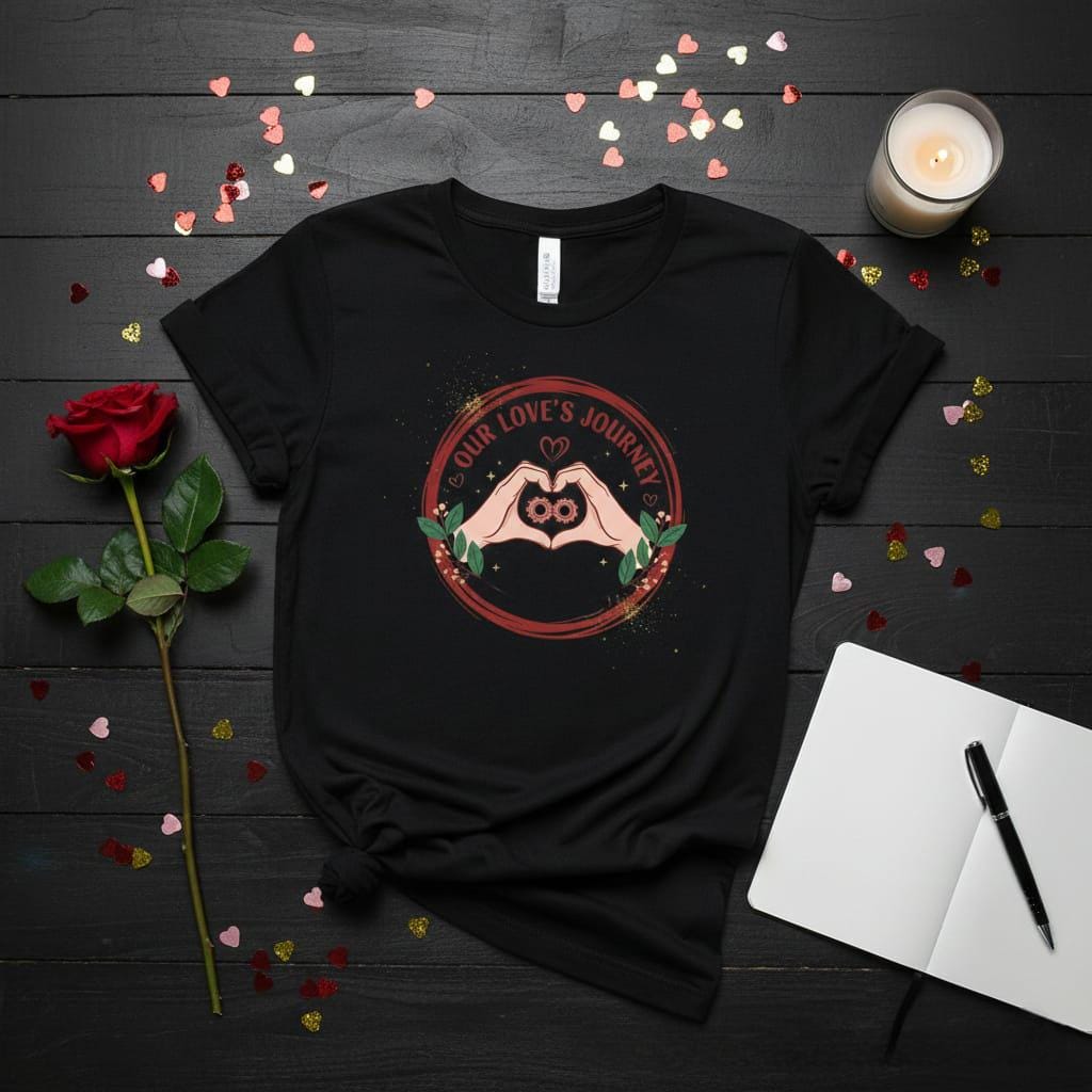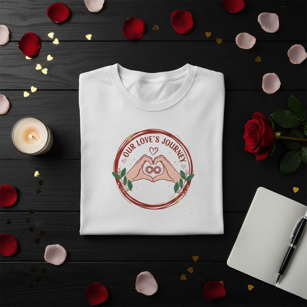 Celebrate the beautiful mechanics of your relationship with this unique Our Love's Journey digital design; featuring a minimalist yet powerful illustration of two hands forming a heart, this artwork captures the essence of partnership and unity; at the very core, two interlocking gears form an infinity symbol, beautifully representing how two lives work in perfect harmony to create a love that never ends; the design is encased in a rustic, hand-drawn circular frame in a warm terracotta hue, adorned with delicate green leaves and berries that add a touch of organic freshness; shimmering gold glitter accents and dainty stars are scattered throughout, giving the piece a celebratory and magical feel; the bold, modern typography of "Our Love's Journey" follows the curve of the frame, making it a standout choice for anniversary gifts, wedding journey journals, and meaningful Valentine's Day surprises; this high-resolution transparent PNG is expertly crafted for premium sublimation on "adventure-themed" apparel, personalized travel mugs, custom planners, and modern wall art; the blend of "industrial-chic" gears with soft romantic elements offers a fresh and contemporary aesthetic that appeals to modern couples who value both the work and the wonder of their love; whether you are documenting your own story or creating a gift for a soulmate, this Infinity Heart & Gears design brings a sense of purposeful devotion to every creative project (digital product only).