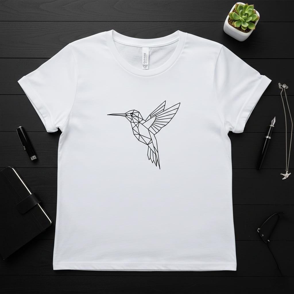 Celebrate the beauty of agility and grace with this exquisite Geometric Hummingbird digital design; a sophisticated piece of modern line art that captures the vibrant energy of nature's tiny wonder in a sleek polygonal form; this illustration features a hummingbird in mid-flight, rendered with a series of precise triangular facets and clean lines that create a stunning sense of movement and transparency; the minimalist black-on-white aesthetic ensures maximum versatility, making it a perfect choice for feminine fashion, botanical-themed home decor, and elegant gift branding; the intricate geometry highlights the bird's delicate wings and long beak, offering a symbol of joy and resilience that resonates with bird watchers, garden lovers, and minimalist art enthusiasts; this high-resolution transparent PNG is meticulously optimized for premium sublimation on light-colored apparel, custom stationery, delicate tech decals, and modern gallery wall prints; its refined structure also serves as a flawless template for minimalist tattoo designs or contemporary vinyl crafts; whether you are creating a gift for a nature enthusiast or adding a touch of delicate modernism to your shop, this Polygonal Hummingbird design brings a sense of lighthearted elegance to every creative project (digital product only).