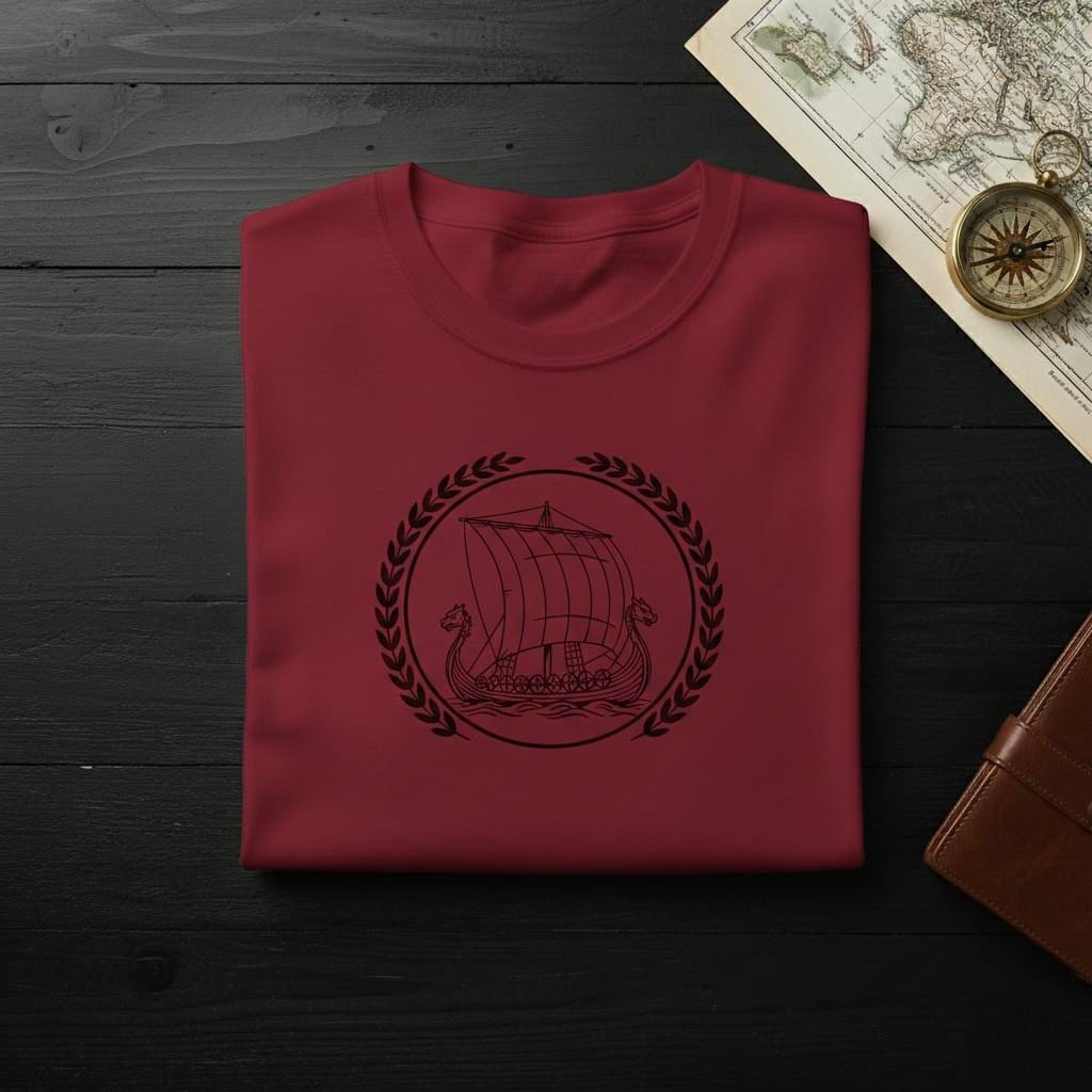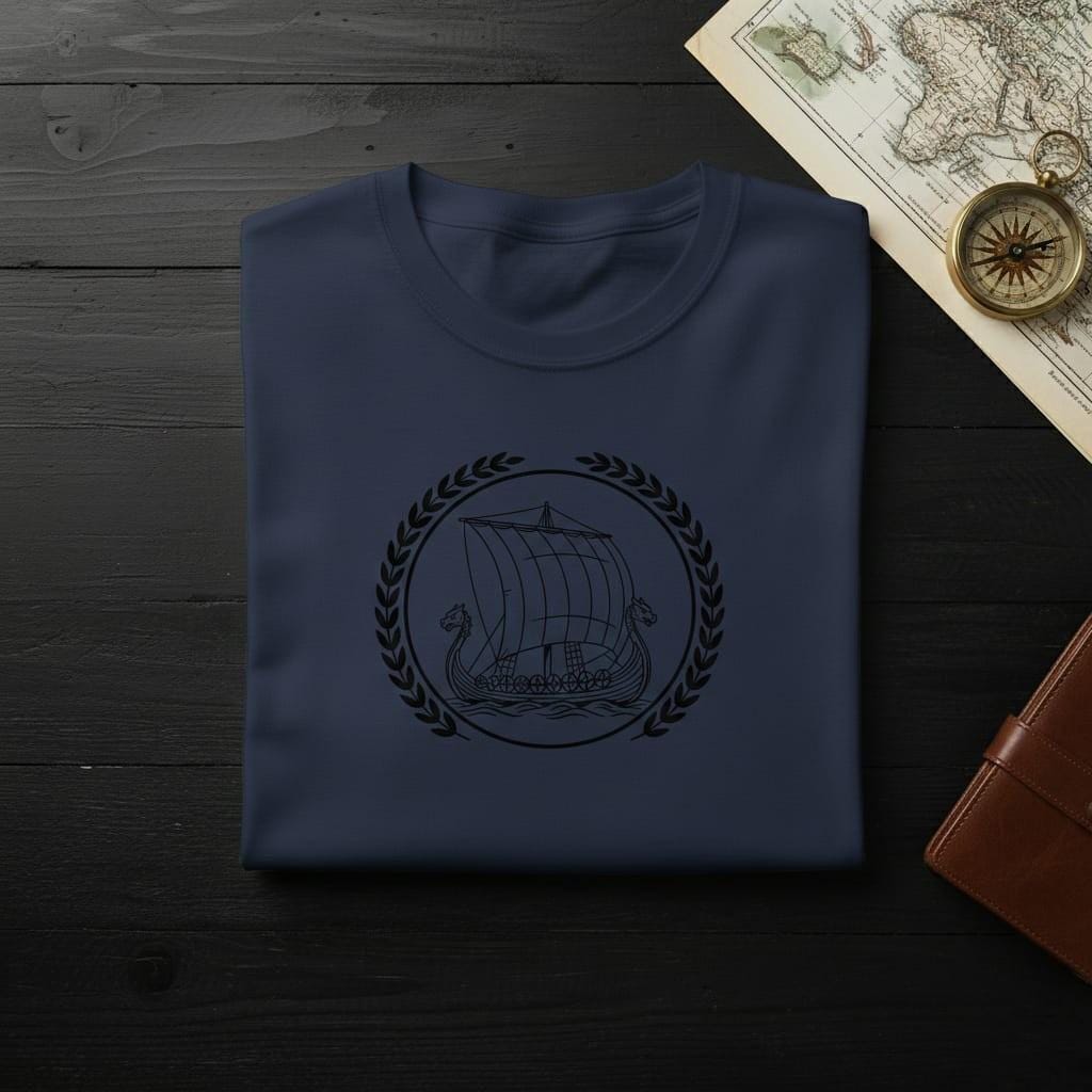 Embark on a journey to the legendary North with this striking Viking Longship digital design; a powerful emblem that captures the fearless spirit of the Norse seafarers; this illustration features a meticulously detailed Drakkar with its iconic dragon heads, billowing sails, and protective shields, all elegantly enclosed within a circular frame and a majestic white laurel wreath; the clean, high-contrast white line art on a black background creates a sophisticated "vintage seal" look that symbolizes adventure, honor, and the pursuit of Valhalla; it is an ideal choice for history buffs, fans of Norse mythology, and those who resonate with the warrior's path; this high-resolution transparent PNG is perfectly optimized for premium sublimation on dark apparel, rugged hoodies, beer steins, and minimalist wall art; the intricate linework of the waves and the ship's structure adds a touch of artisanal craftsmanship to any project; whether you are creating a gift for a modern-day explorer or adding a touch of Viking heritage to your brand, this Norse Voyager design brings a sense of epic storytelling and prestige to every creative surface (digital product only).
