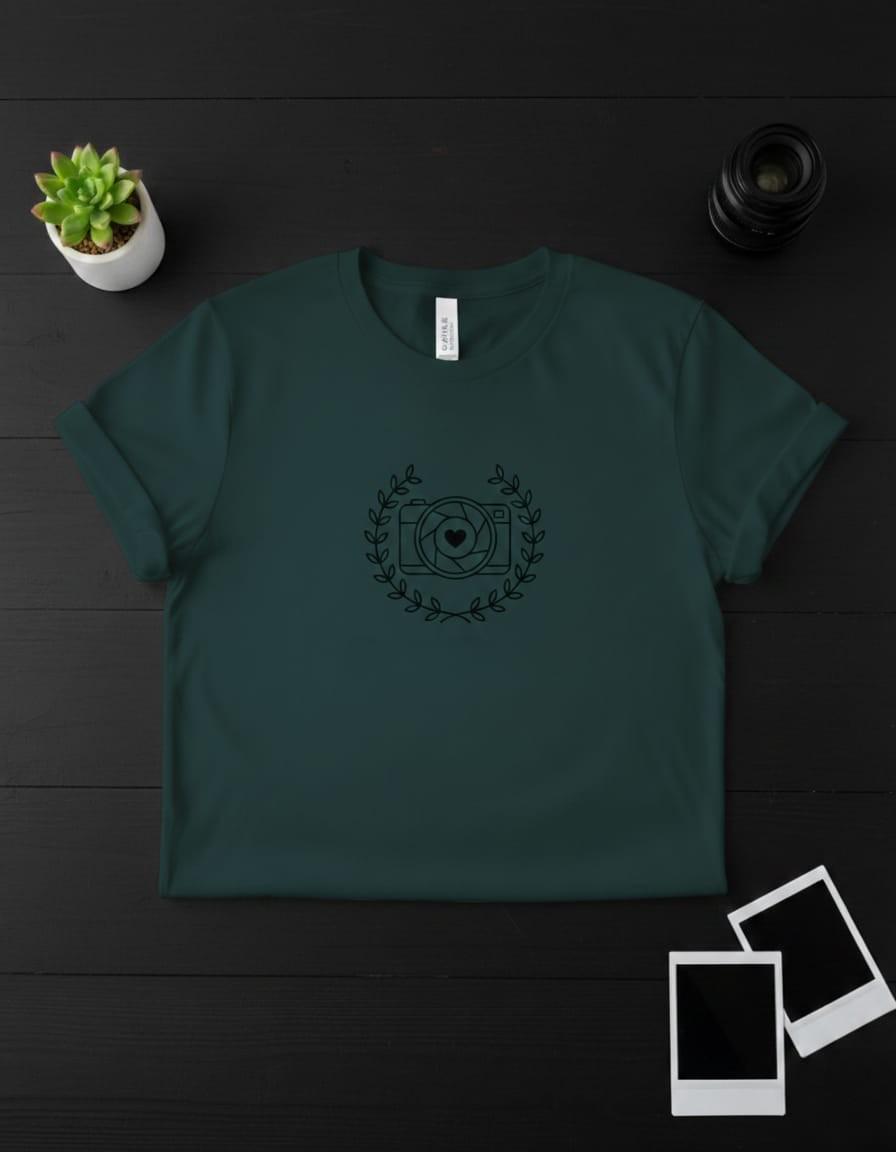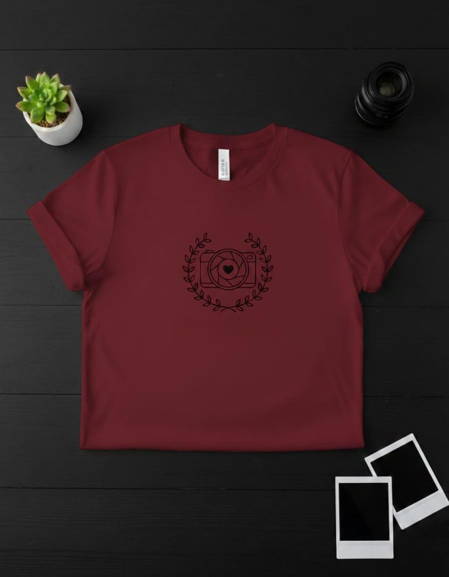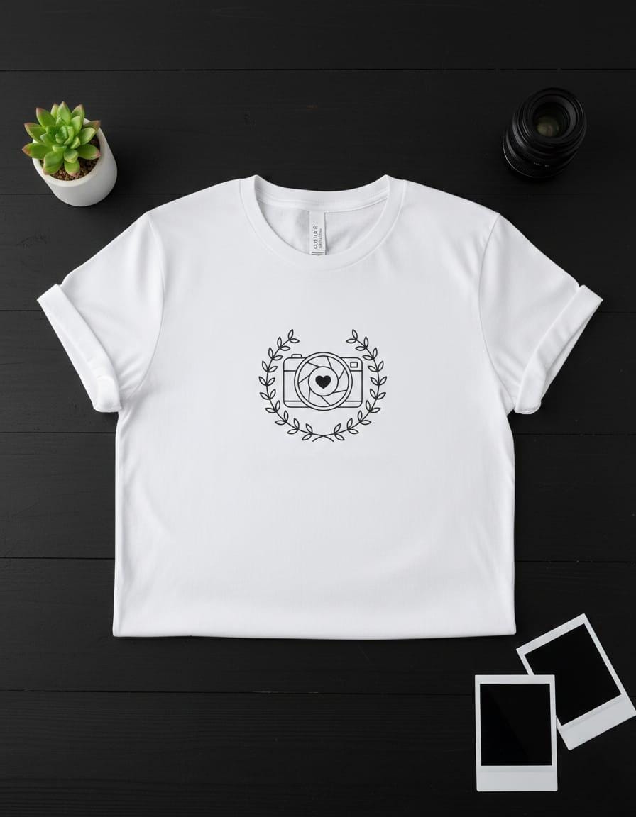 Capture the essence of passion with this Photographer’s Heart digital design; a charming and professional emblem that celebrates the love behind the lens; this illustration features a classic camera silhouette with a delicate heart nestled right in the center of the aperture, beautifully framed within a graceful black laurel wreath; the design symbolizes the "art of seeing with the heart" and the joy of capturing life's most precious moments, making it an ideal choice for wedding photographers, family portrait artists, and hobbyist shutterbugs; this high-resolution transparent PNG is perfectly optimized for premium sublimation on white t-shirts, stylish camera bags, personalized lens cloths, and minimalist studio wall decor; the clean, modern line art offers a "boutique studio" aesthetic that is both approachable and professionally polished; whether you are creating a unique brand identity for your photography business or a "Best Photographer Ever" gift for a friend, this Aperture Love design brings a sense of creative warmth and prestigious flair to every project (digital product only).