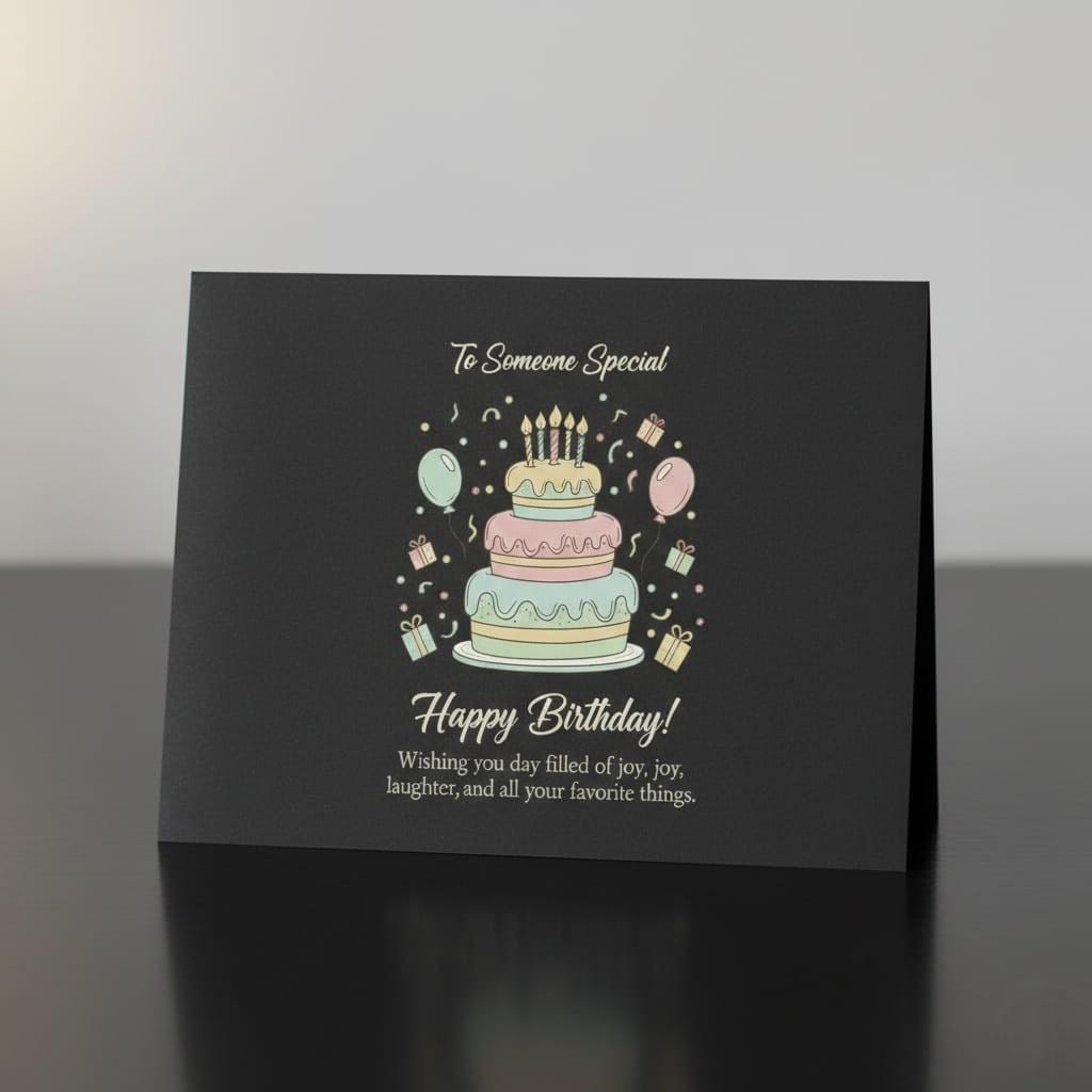 Make their big day unforgettable with this Pastel Celebration digital birthday design; a whimsical and heartwarming illustration that captures the pure joy of a birthday party; this artwork features a magnificent three-tiered cake in soft mint, pink, and yellow hues, topped with glowing candles and surrounded by floating balloons, festive gift boxes, and a sprinkle of colorful confetti; the elegant "To Someone Special" and "Happy Birthday" typography, combined with a soulful message of joy and laughter, makes it a perfect choice for friends, family, or little ones; this high-resolution transparent PNG is expertly optimized for instant printable cards, premium sublimation on birthday t-shirts, personalized gift tags, and festive party invitations; the soft color palette and hand-drawn style offer a "boutique stationery" feel that is both trendy and timeless; whether you are a DIY crafter creating a last-minute masterpiece or a small business owner looking for the perfect celebratory graphic, this Whimsical Birthday Cake design brings a touch of magic and sincere warmth to every celebration (digital product only).