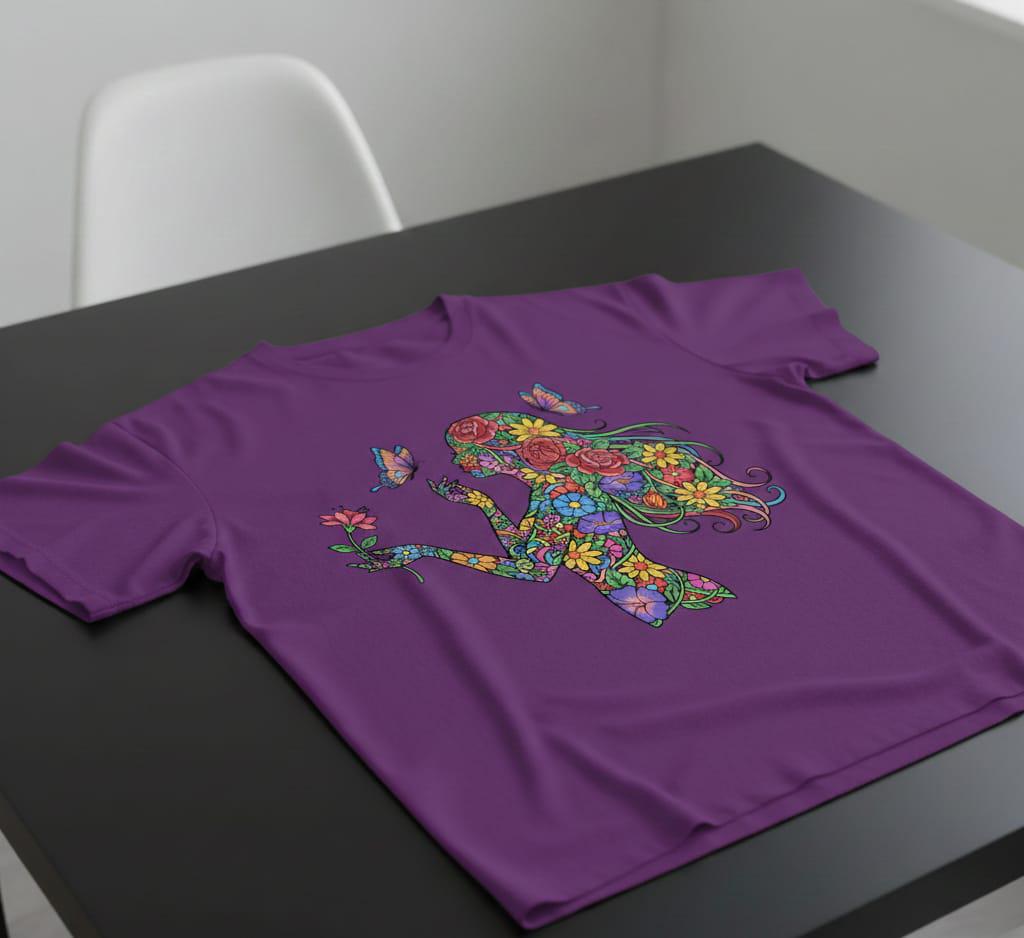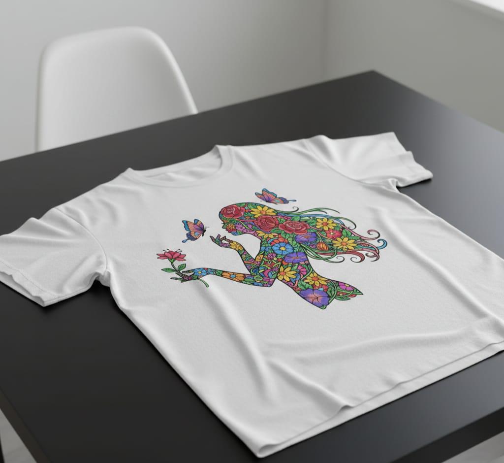 Immerse yourself in the vibrant world of nature with this stunning Floral Woman PNG, a digital download that captures the essence of growth and beauty. Inspired by stained glass art, the design features a graceful feminine silhouette filled with colorful nature elements and a delicate butterfly motif that symbolizes transformation. Perfect for sublimation projects, this artwork brings a boho floral art vibe to any creative endeavor.