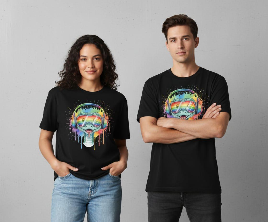 Immerse yourself in the vibrant world of music and color with this striking snake PNG design, perfect for any music lover art enthusiast. Featuring a turquoise serpent adorned with rainbow headphones, this artwork bursts with lively watercolor splash effects that celebrate creativity and inclusivity. Whether you're crafting a kids t shirt design or a bold artistic print, this digital download brings playful energy and pride to your projects.