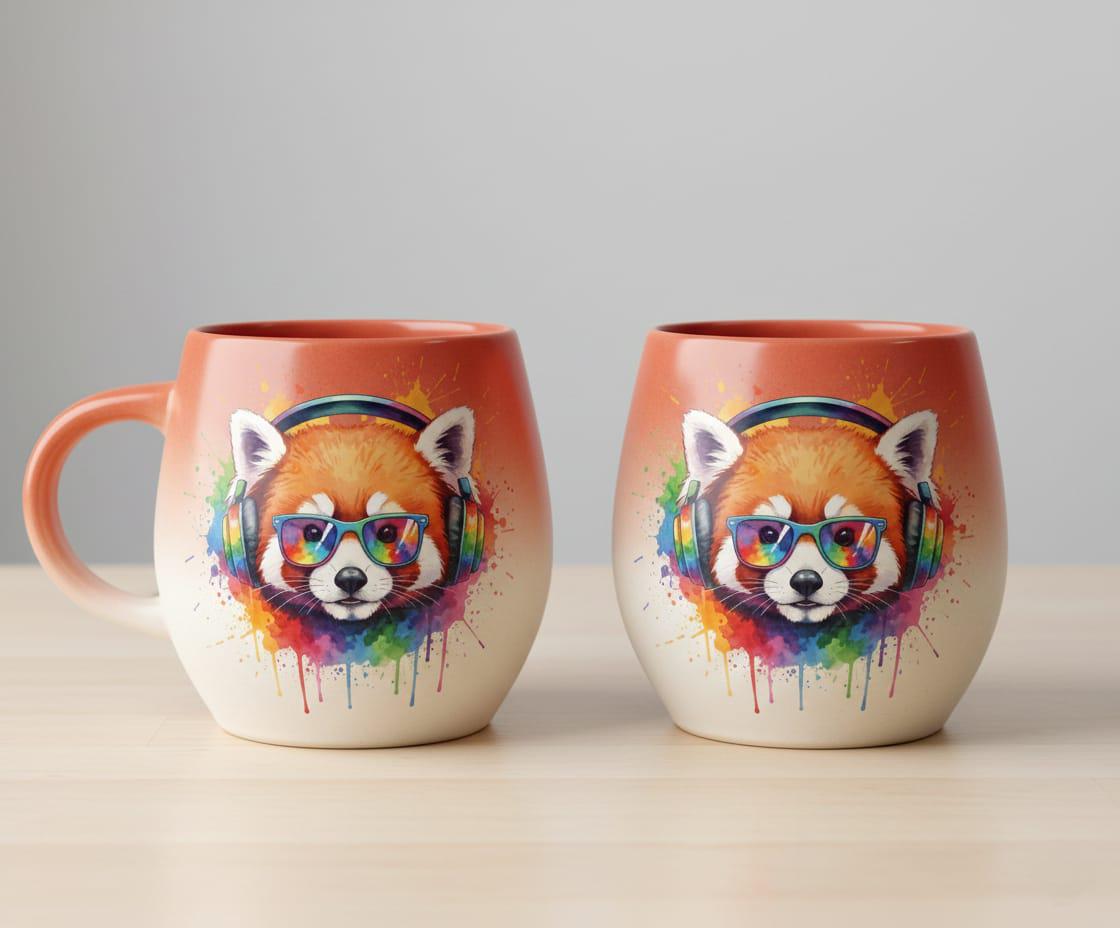 Immerse yourself in the playful spirit of this vibrant red panda PNG, designed to captivate fans of rainbow art and music lover gifts alike. Featuring a groovy red panda adorned with rainbow-colored headphones and cool blue glasses, this watercolor splash illustration brings indie style art to life with vivid colors and whimsical details. Perfect for adding a fun animal PNG touch to your creative projects, it’s a unique digital download that celebrates personality and joy.